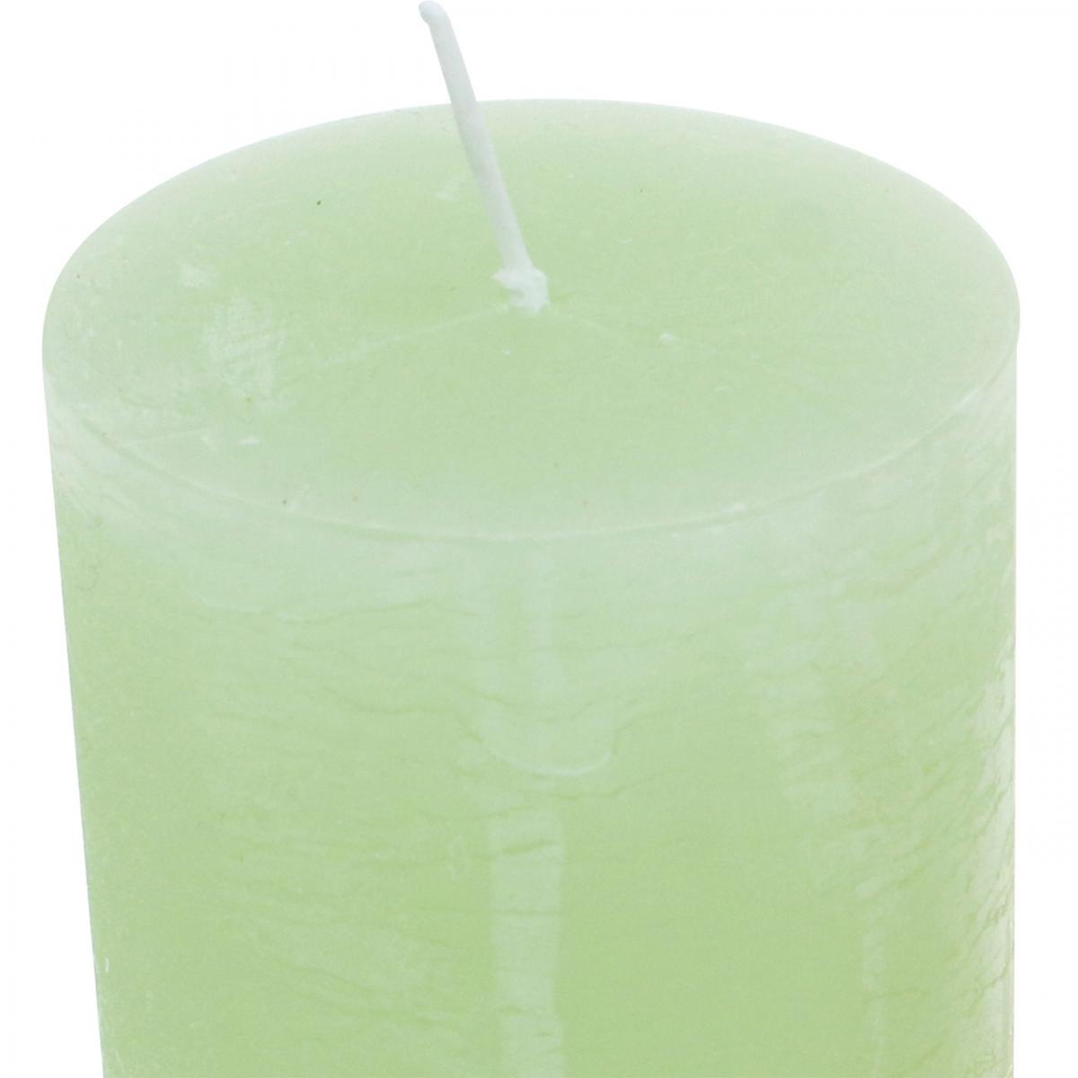 Candele a colonna verde lime, colorate in ogni loro parte, 60x100 mm, decorazione per matrimoni, decorazione primaverile, set da 4