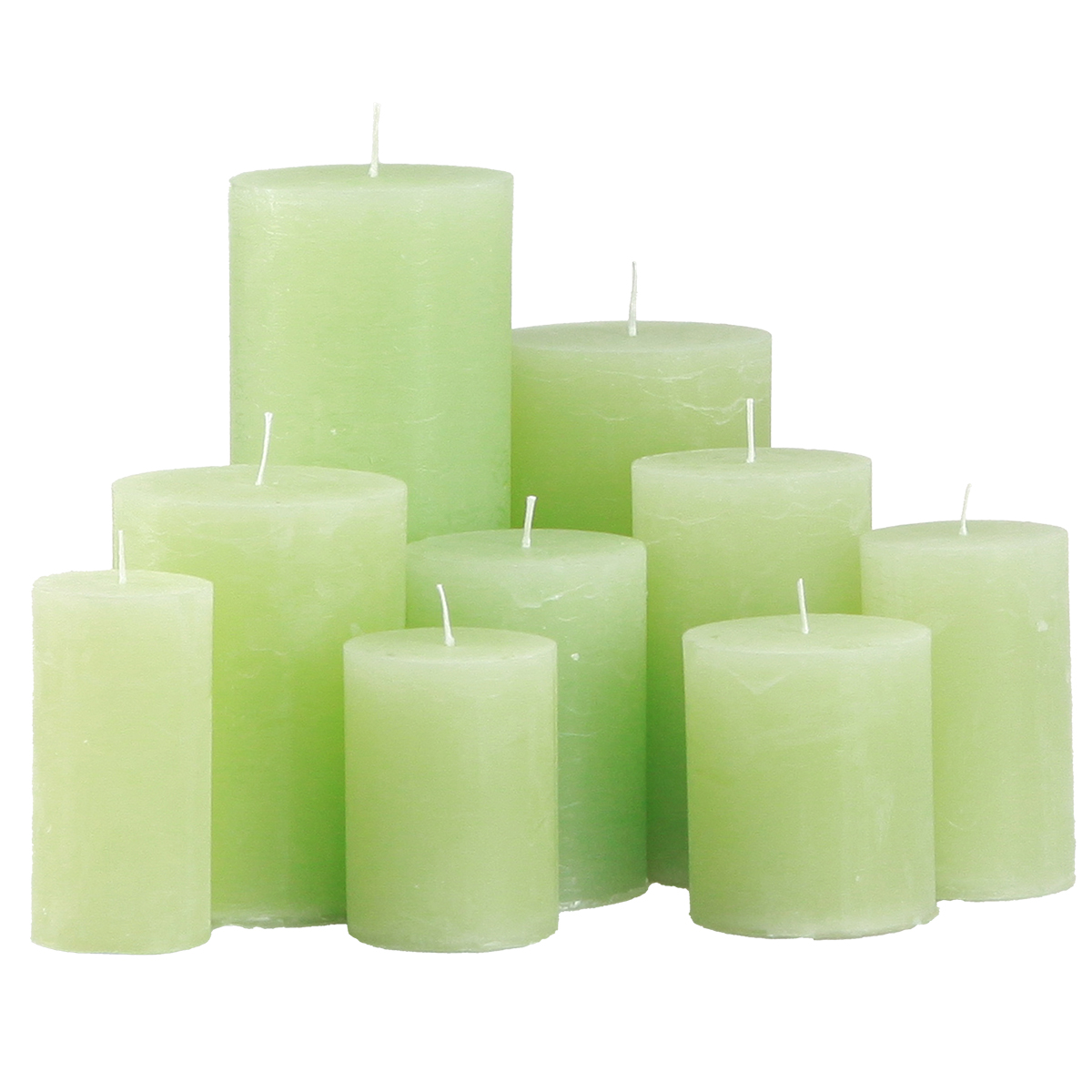 Ordina adesso le tue candele a colonna verde lime nella dimensione desiderata e porta una ventata di aria fresca nella tua decorazione!