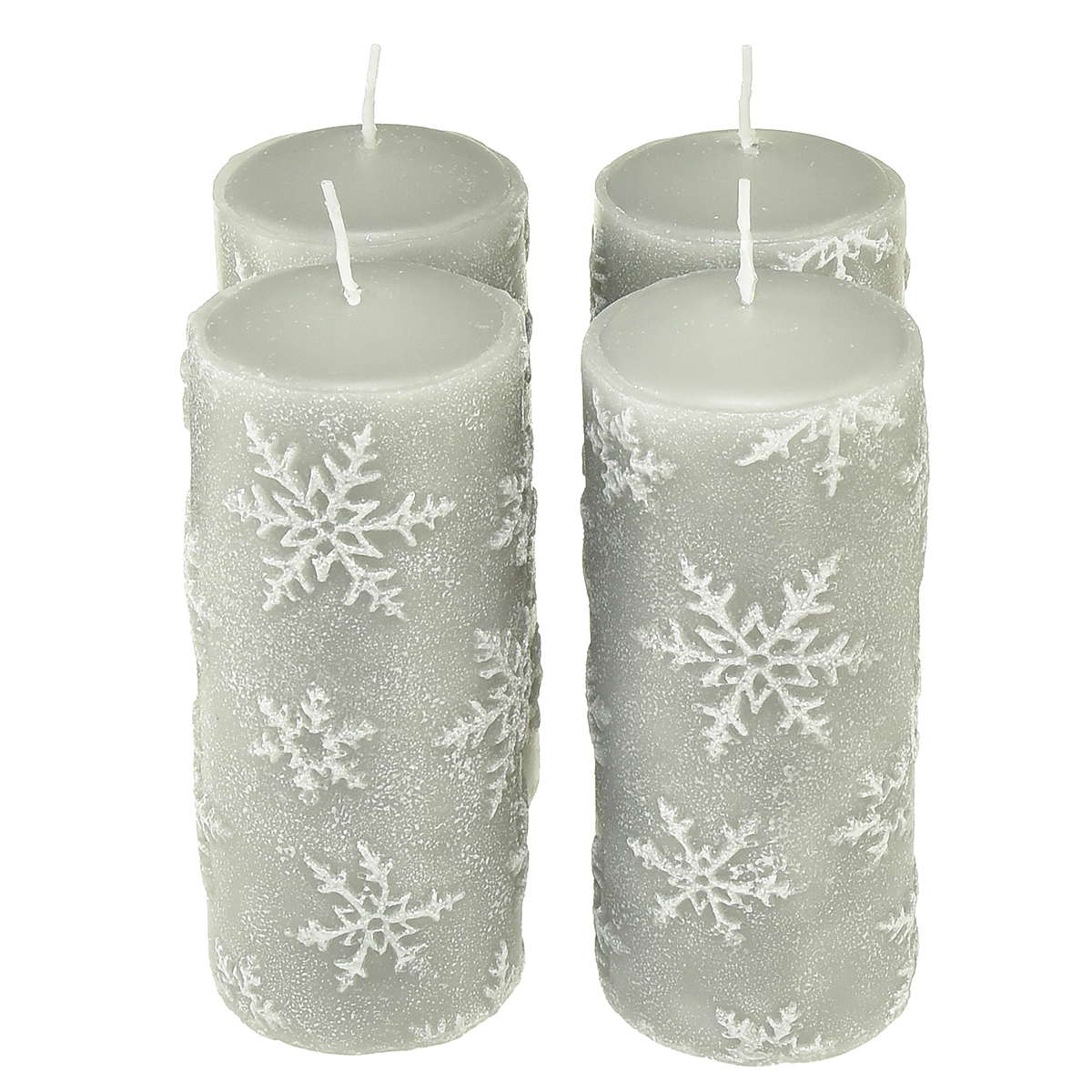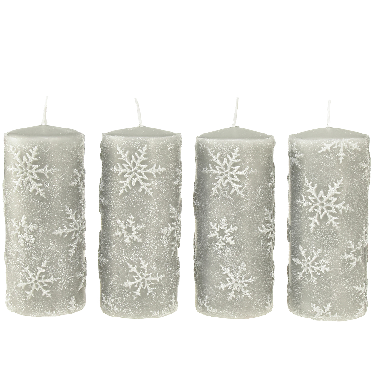 Stumpenkerzen Grau Kerzen Schneeflocken 150/65mm 4 St