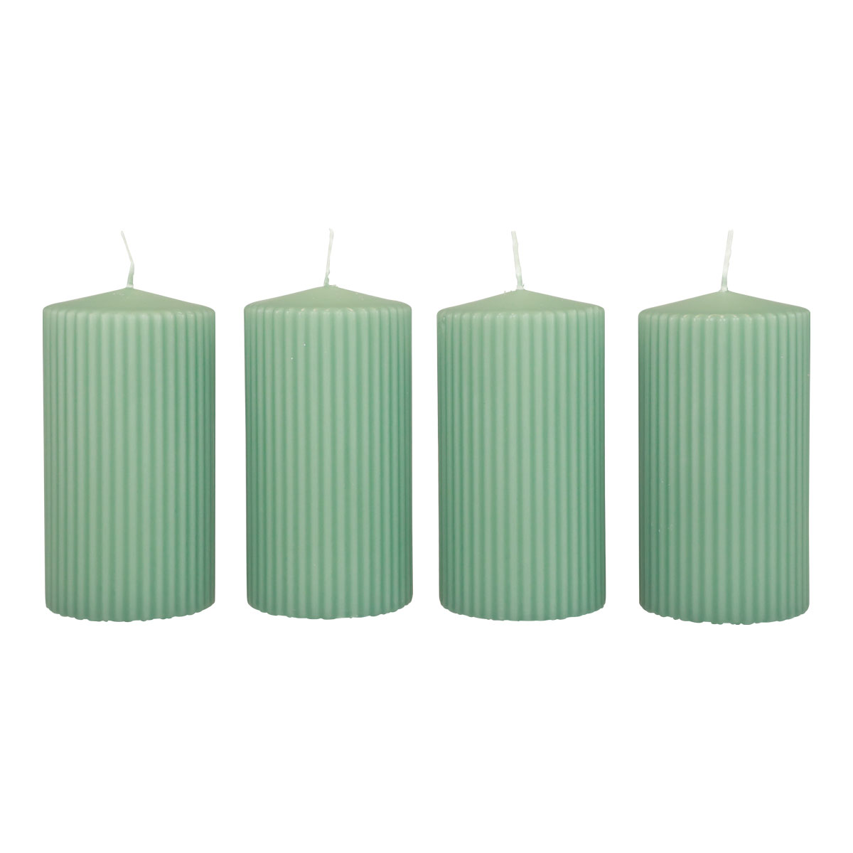 Candele a colonna verde smeraldo con scanalature 70/130 mm 4 pezzi
