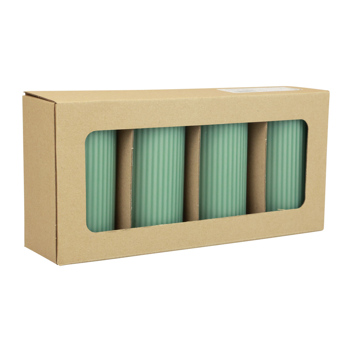 Bougies piliers vertes émeraude rainurées 70/130 mm 4 pièces