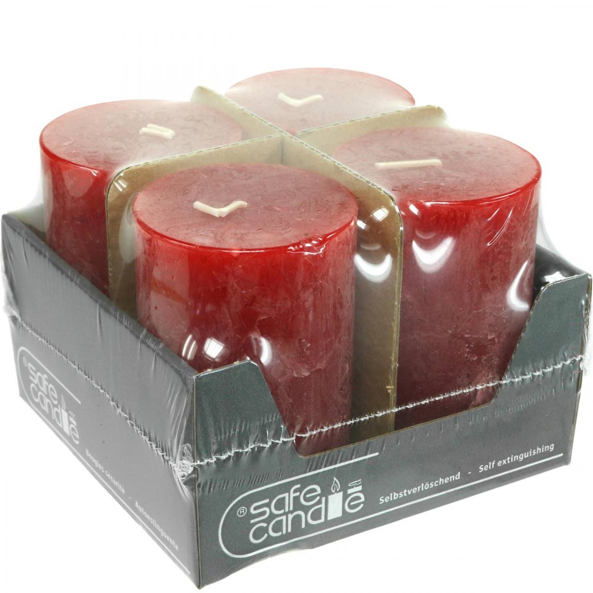 Produktname: 4er Set Adventskerzen Rot Sicherheits-Stumpenkerzen Rustic 70/110mm für Weihnachtsdeko