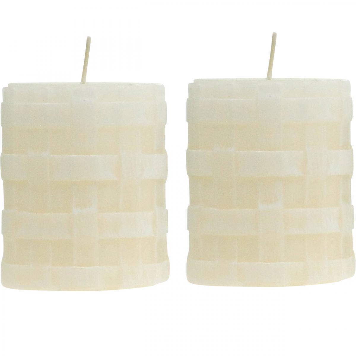 Produktname: Stumpenkerzen Weiß Rustic 80/65 Set 2 Stück Sicher Vintage Dekoration
