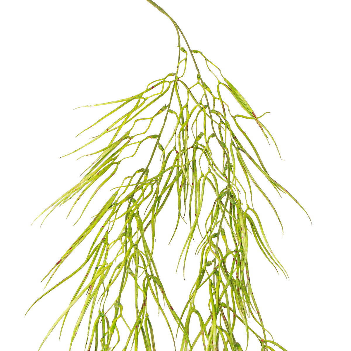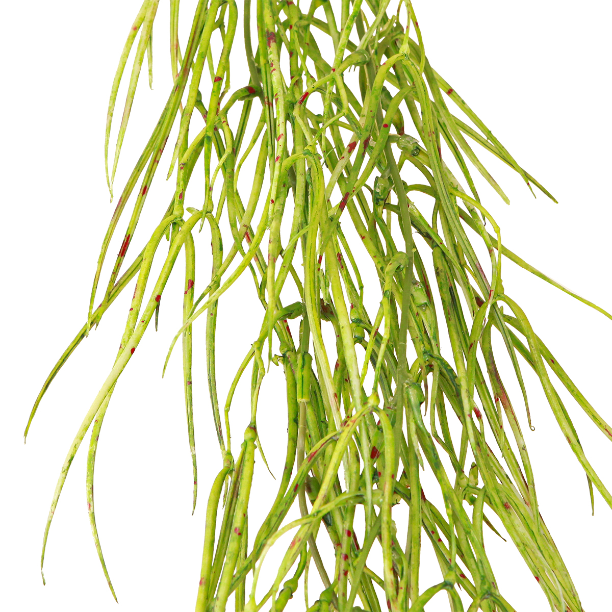 Servez-vous de cette succulente retombante pour habiller l’un de vos murs et donner à votre intérieur un look naturel teinté d’exotisme. Fabriquée en plastique vert ponctué de petites taches brunes, cette succulente est l’imitation d’une plante de la famille des ceropegia et trouve ses origines principalement en Afrique. Avec sa longue tige armée de métal qui se divise en deux grandes parties, elle peut être modelée et articulée comme bon vous semble. Vous pourrez par exemple placer cette guirlande végétale dans un coin de votre chambre, l’entourer autour d’une tringle à rideaux ou encore la répartir gracieusement sur un rebord de fenêtre.Attachée sur la rambarde de votre balcon, cette succulente artificielle aura des airs de plante grimpante méditerranéenne. Vous en profiterez également pour garnir vos étagères et vos commodes, par exemple en piquant la plante dans une pot garni de mousse florale sèche ou de polystyrène et en faisant retomber naturellement les tiges par dessus le pot comme le ferait une vraie succulente lors de sa croissance. Une superbe idée déco pour des espaces où il y a beaucoup de passage comme les vitrines, les salles de restaurants et les grands bureaux.