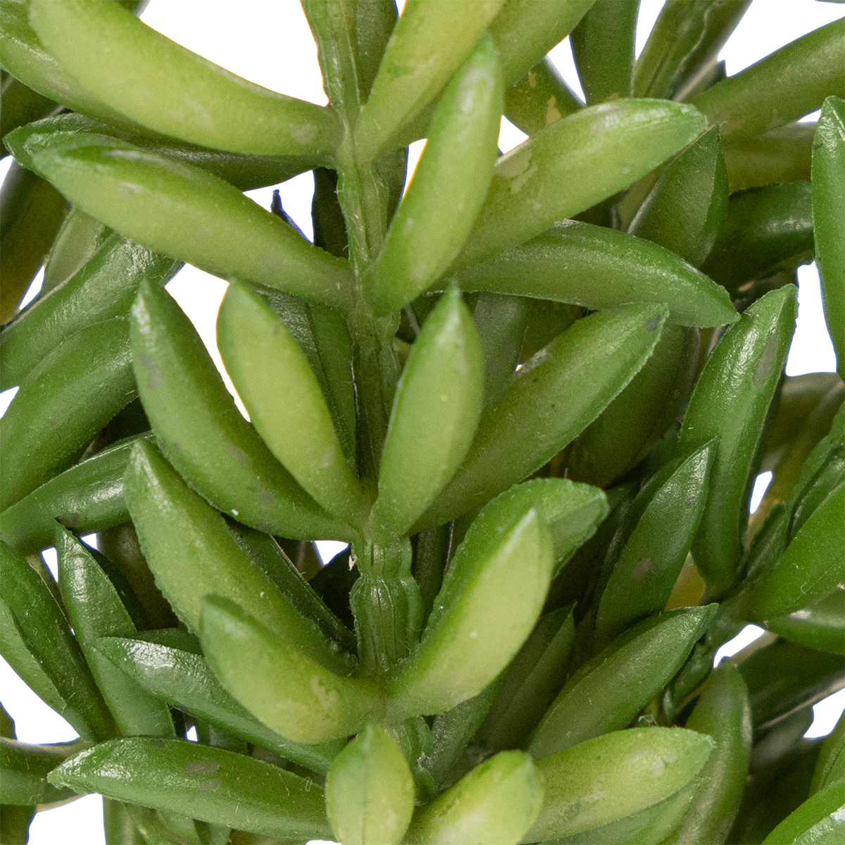 La nostra succulenta artificiale colpisce non solo per il suo design realistico, ma anche per la sua versatilità. I dettagli meticolosi e il colore verde intenso la rendono un elemento decorativo perfetto per qualsiasi ambiente. Lo stelo spesso e robusto garantisce che la pianta si adatti a qualsiasi vaso o composizione, mentre i suoi rami a sei punte offrono un aspetto particolarmente naturale. Questo fiore artificiale è ideale per chi cerca opzioni decorative a bassa manutenzione. Con un'altezza di 15 cm, si adatta perfettamente a mensole, credenze o vetrine. Abbinata ad altri elementi decorativi come ciotole di legno, portacandele o vasi di vetro minimalisti, crea rapidamente un aspetto generale armonioso. Preferisci uno stile moderno o scandinavo? Questa succulenta si integra perfettamente e sarà sicuramente un'attrazione! La succulenta fa un'ottima figura anche in ufficio. Spazi come reception, sale d'attesa o sale conferenze beneficiano della sua atmosfera rilassante e delle sue rilassanti tonalità di verde. Vuoi abbellire il tuo ufficio senza richiedere a nessuno di investire tempo nella manutenzione? Queste piante artificiali offrono la soluzione perfetta.