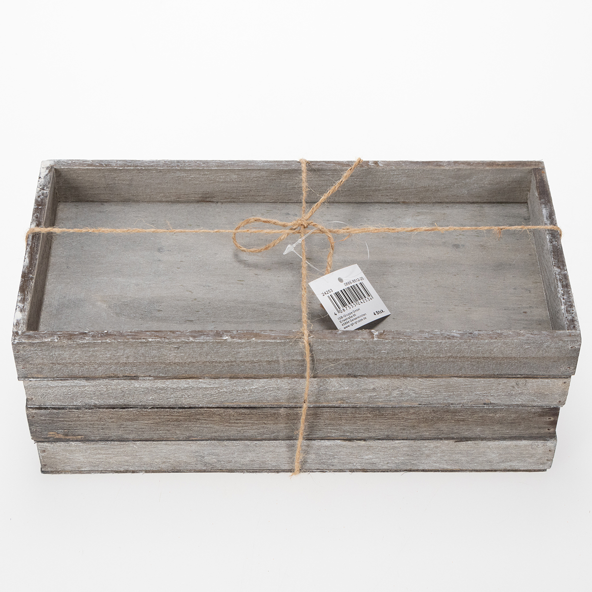 Questo vassoio rettangolare in legno è perfetto per ogni situazione. Che sia un'elegante base per le vostre decorazioni o un pratico contenitore per caffè e dolci, colpisce per il suo aspetto semplice e la lavorazione di alta qualità. Il look rustico e vintage si sposa magnificamente con materiali naturali e colori tenui. Chi ama arredare in stile country moderno o in stile scandinavo adorerà questo vassoio. E le possibilità? Sono quasi infinite! In cucina, potete usarlo per tenere a portata di mano spezie, oli o piccoli ingredienti in bella vista. In soggiorno, offre spazio per candele, vasi o piccoli accessori da mettere in mostra. Il vassoio in legno è perfetto anche per il bagno, ad esempio per cosmetici, oli essenziali o saponi. Una caratteristica particolarmente pratica: grazie alla sua forma rettangolare, i vassoi possono essere facilmente impilati o riposti in armadi. Il suo legno leggero ma robusto è durevole, rendendolo un fedele compagno di tutti i giorni. E con i quattro vassoi inclusi nel set, potete dare subito vita a tutte le vostre idee decorative.