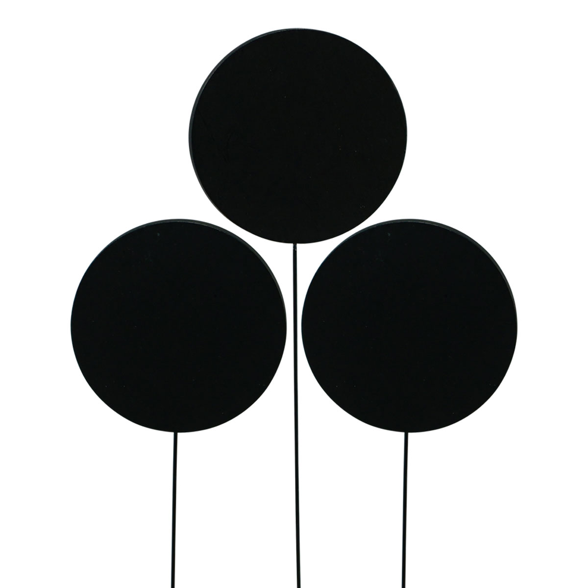 Sie erhalten die Tafeldeko rund und schwarz zu 12 Stück mit einem einheitlichen Durchmesser von etwa 7,5 Zentimetern. Der gesamte Blumenstecker hat eine Länge von etwa 15 Zentimetern.
