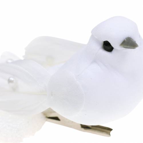 Taube mit Perlen und Clip Weiß H4,5cm 12St