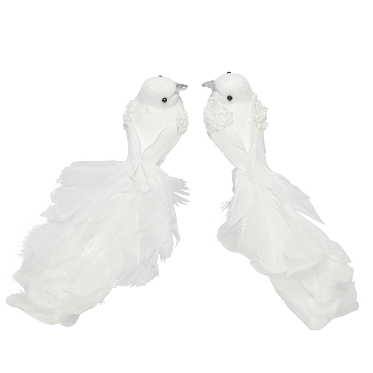 Pigeons de décoration de mariage en couple de pigeons sur pince blanc 22cm 2 pièces