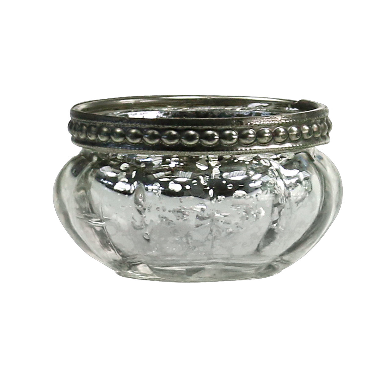 Photophore en verre argenté antique avec rebord en métal Ø6cm H3,5cm
