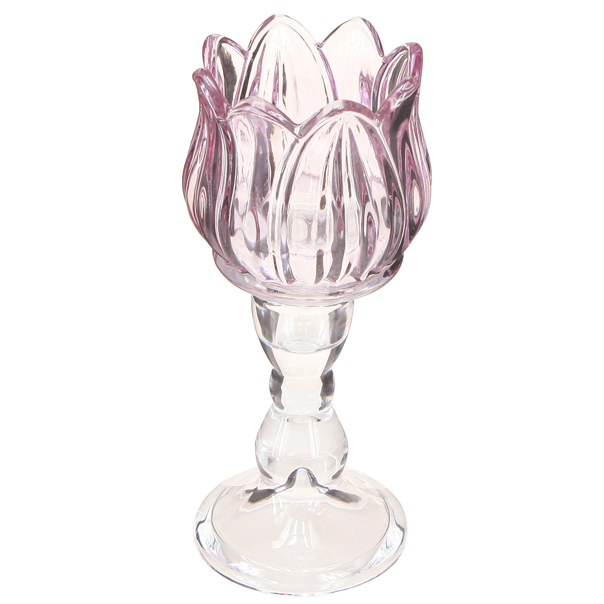 Portacandele in vetro a forma di tulipano in vetro viola Ø7cm H16cm 2pz