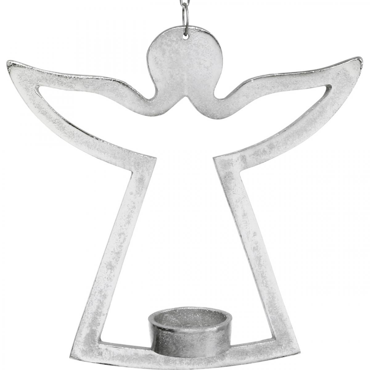 Portacandela con angelo, decorazione candela da appendere, metallo argento H20cm
