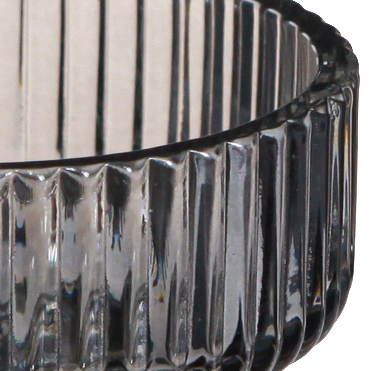 Photophore verre décoratif nervuré teinté gris Ø9cm H7cm 4 pcs