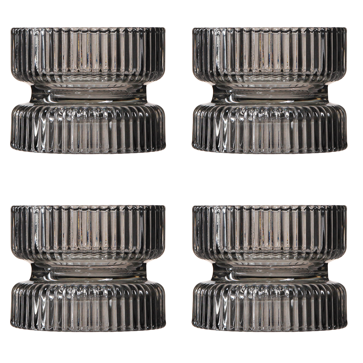 Produktname: Teelichthalter Glas Deko Geriffelt Grau getönt Ø9cm H7cm 4 St