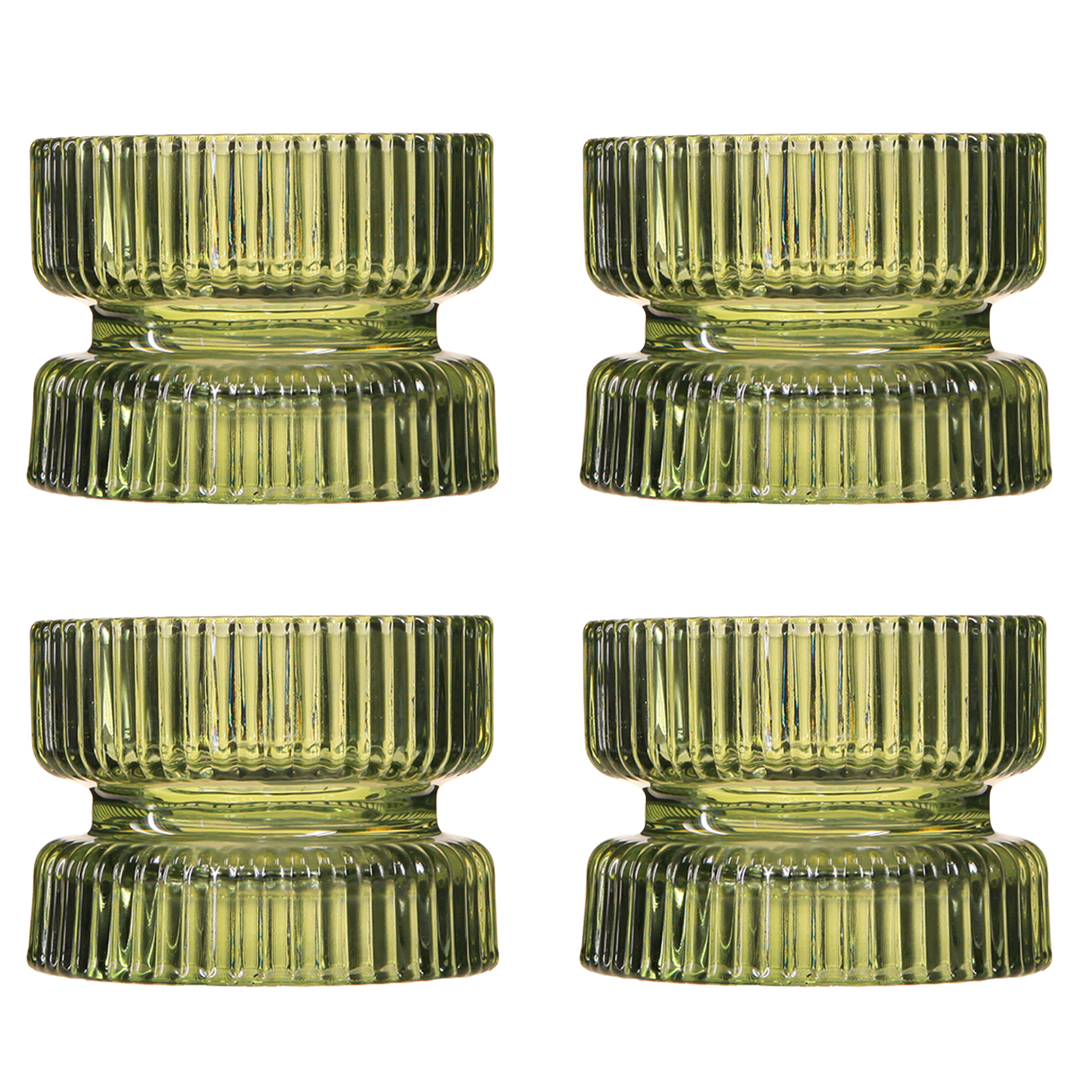 Photophore verre décoratif nervuré vert Ø9cm H7cm 4 pcs