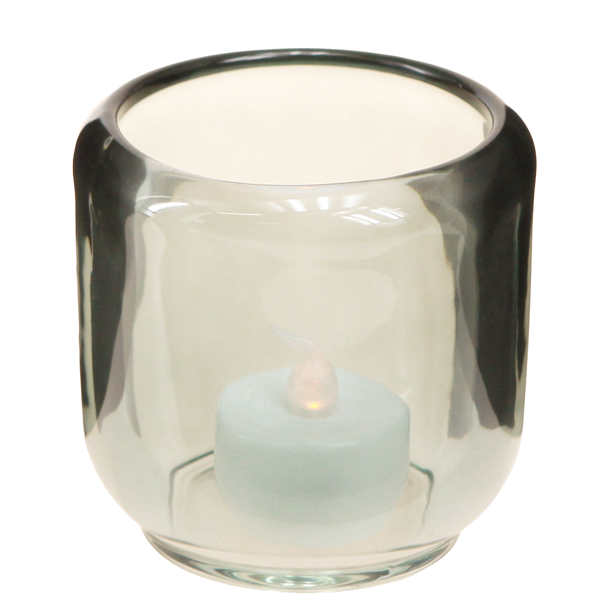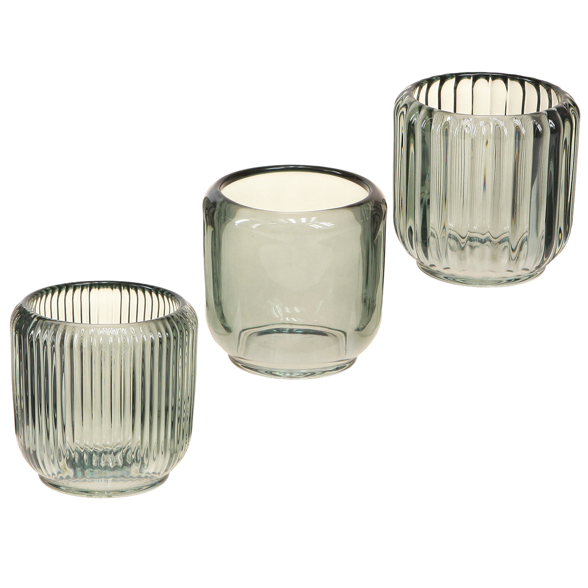 Photophore en verre décor rainures grises 8cm 6 pcs