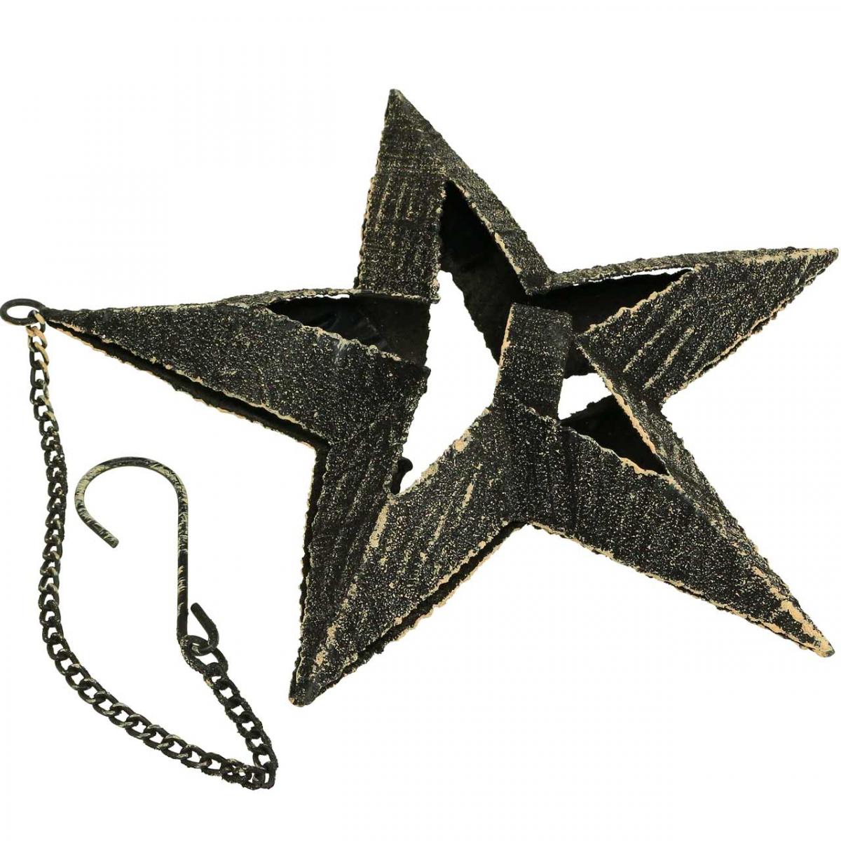 Questo portacandele in metallo è stato progettato con una patina simile a quella di una stella marina. Ruvida e di colore marrone-beige, la stella di Natale può essere appesa come decorazione alla sua catena con ganci.Appendi la stella di Natale davanti a un muro o lascia che l'appendiabiti decorativo irradi la sua magia natalizia fluttuando liberamente nell'appartamento o nella vetrina di un negozio.