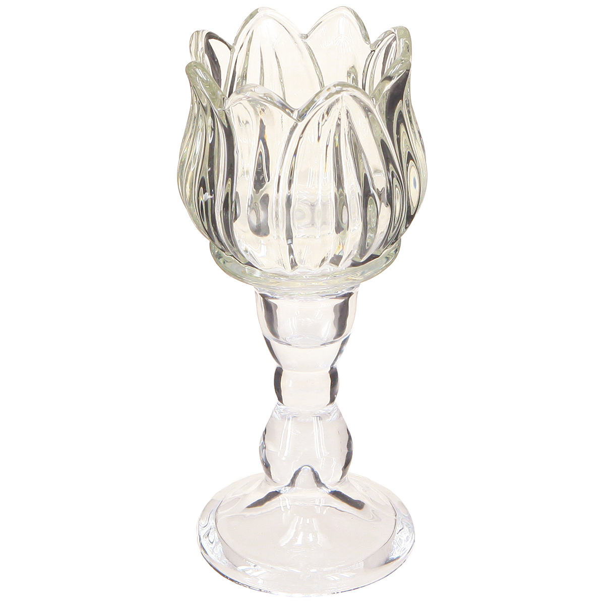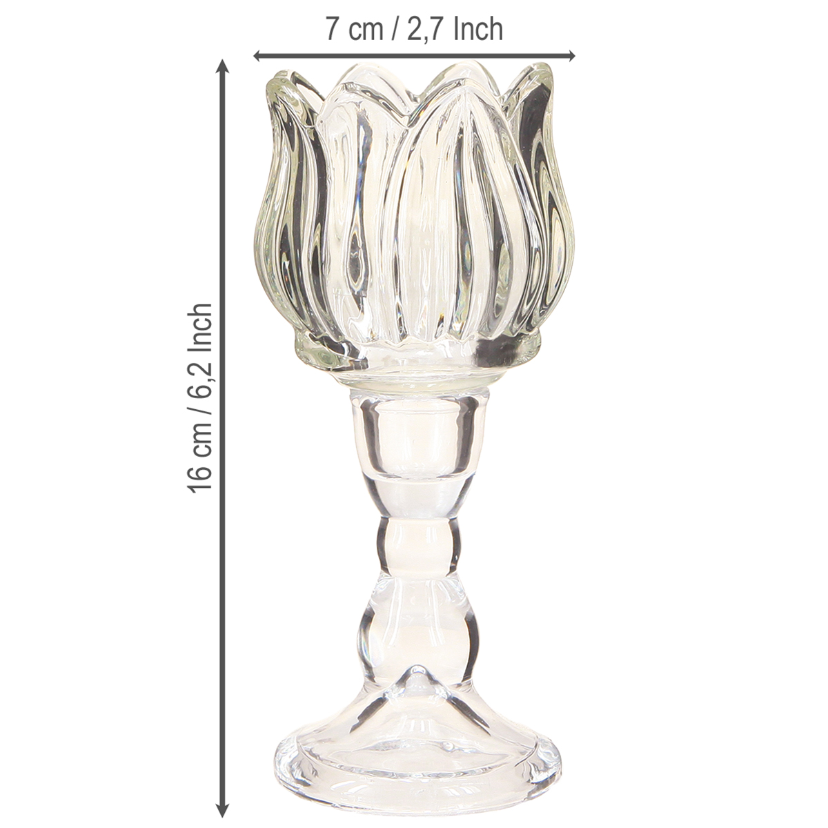 Portacandela tulipano in vetro con base trasparente Ø7cm H16cm 2pz