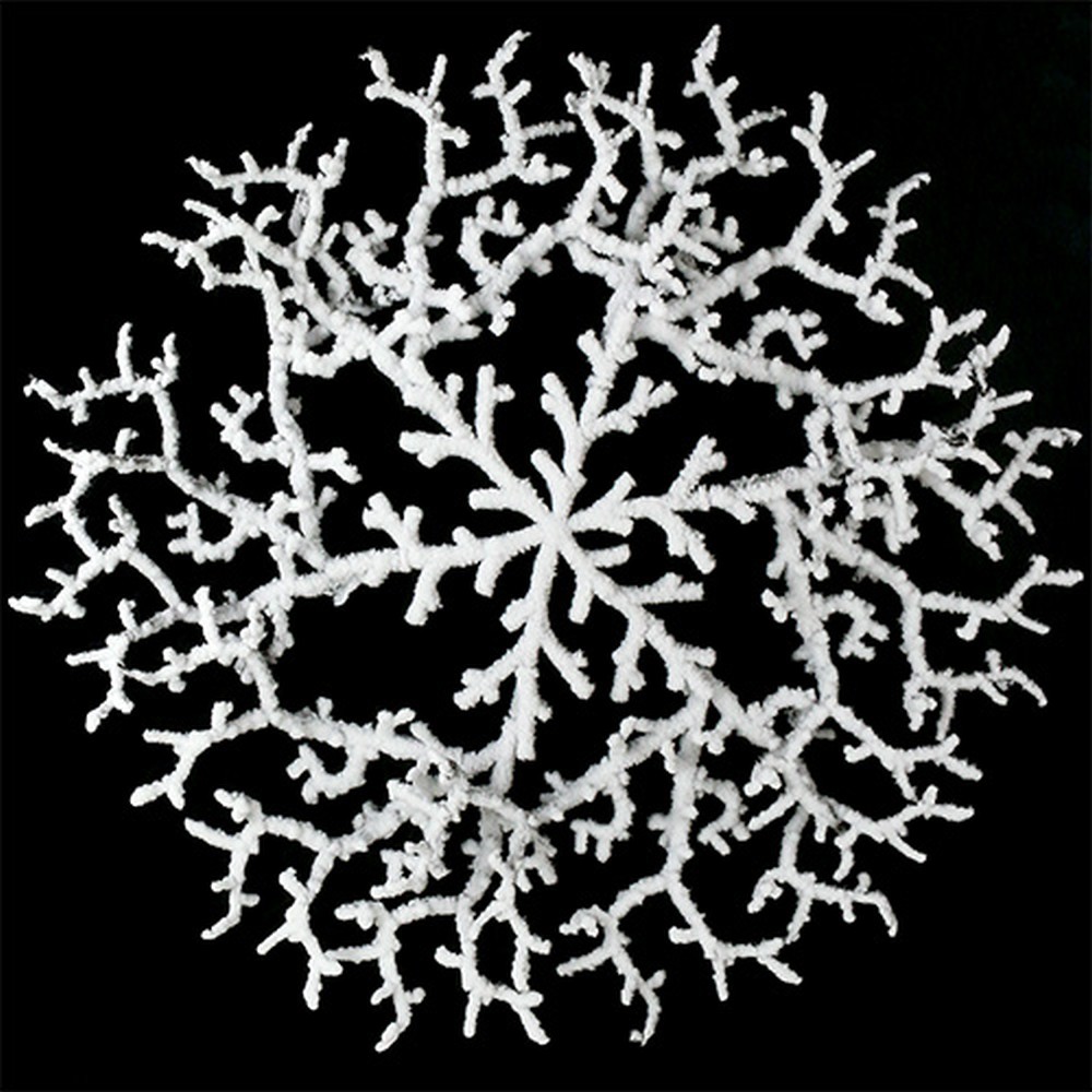 Que diriez-vous d'une décoration de Noël originale: ces branches artificielles sont couvertes de neige et forment une structure ronde! La décoration de la table est composée de 3 barres de métal superposées et soudées en étoile. Y sont rattachées de nombreuses petites branches en plastique, qui ont ensuite été soigneusement recouvertes de neige artificielle. Vue de dessus, les décorations de Noël rappellent un grand flocon de neige, créant une atmosphère de Noël hivernale.Vous pouvez utiliser les branches ramifiées pour attacher une petite guirlande de lumières afin de créer une décoration lumineuse intelligente. De cette façon, vous pouvez accrocher la décoration de Noël avec un fil sur un mur ou une fenêtre et décorer vos locaux de façon agréable et contemporaine. Le tout est vraiment joli si vous l’accrochez au plafond avec plusieurs cordes, puis que vous l’équipez également d’une guirlande de lumière et de quelques guirlandes vert sapin et de Noël. Vous pouvez décorer un hall, votre salon ou la salle à manger avec amour et créativité!