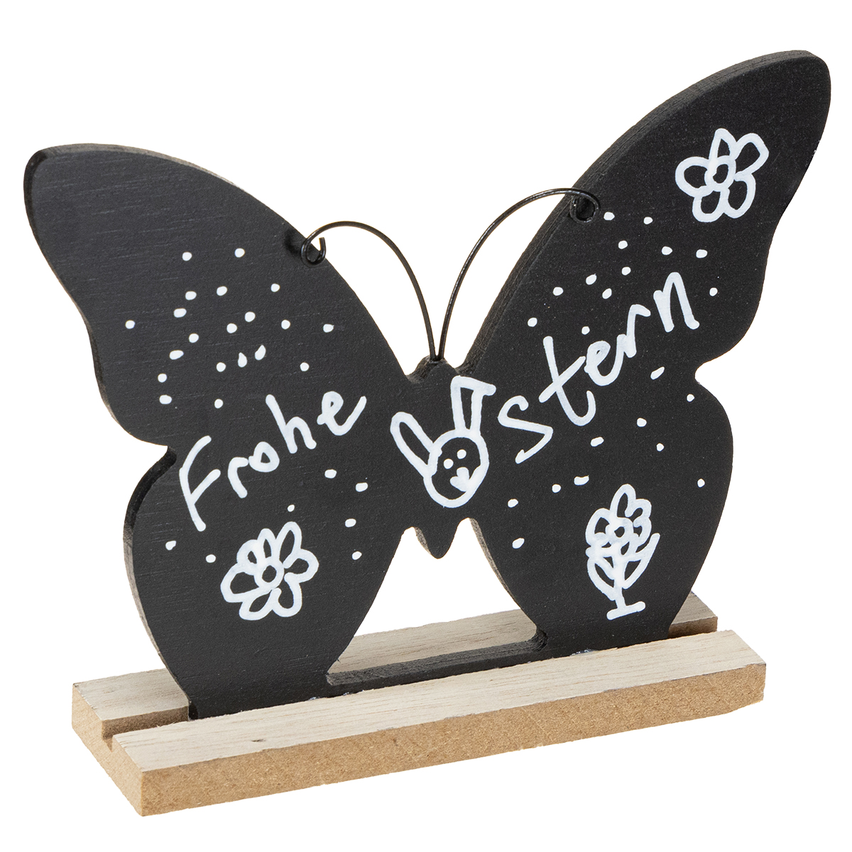 Fate largo a questa elegante decorazione da tavolo in legno a forma di farfalla decorativa nera! Anche la base è in legno ed è disponibile in un colore naturale.La farfalla nera è impreziosita dalle sue delicate antenne realizzate in metallo nero. La farfalla è alloggiata in una stretta fessura al centro della sua base di legno, dove è saldamente fissata.