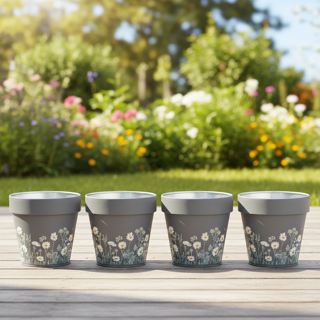 Pot de fleurs à motif marguerite pour une décoration intérieure élégante, 11 cm, lot de 4
