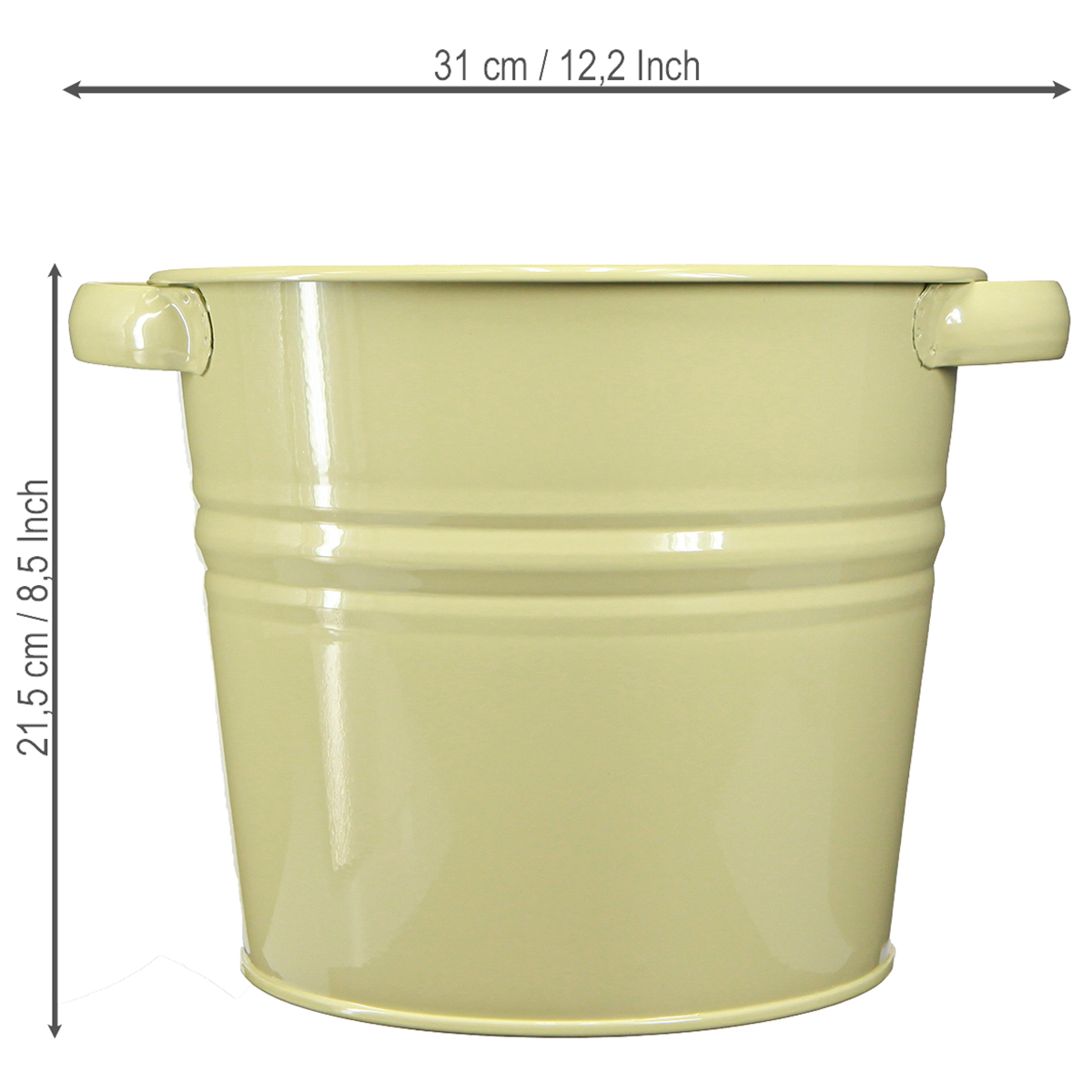 Dieser dekorative Metalltopf in einem frischen Grüngelb setzt moderne Akzente in Ihrem Zuhause. Mit seinen stattlichen Maßen von etwa 31×26×21,5 cm und den praktischen seitlichen Griffen bringt dieser Blumenkübel sowohl Funktionalität als auch Stil in Innen- und Außenbereiche.
