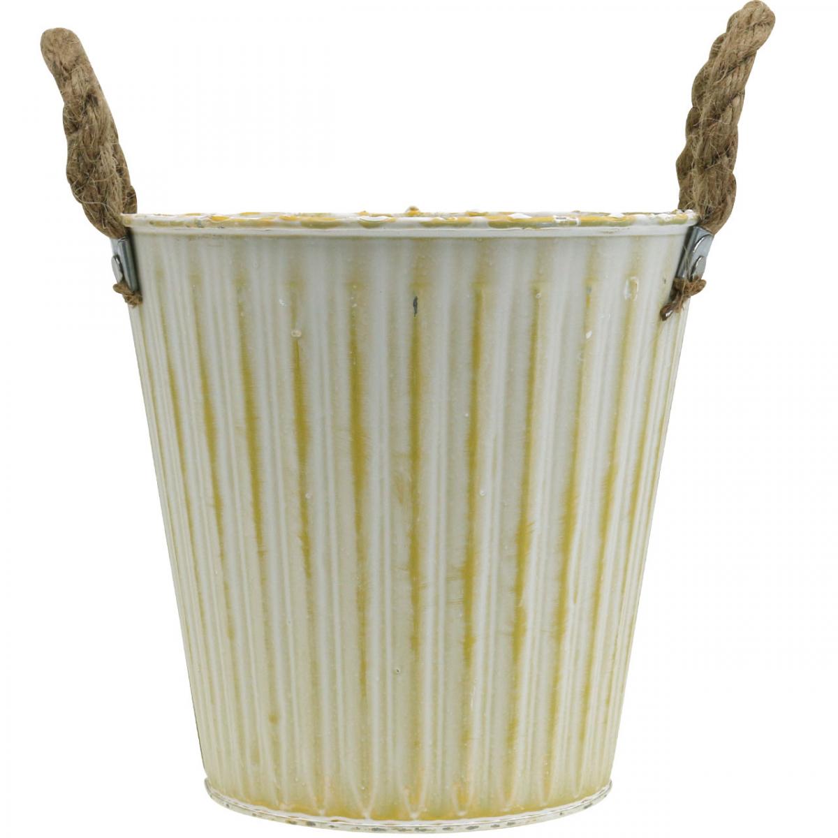 Topf aus Metall, Frühlingsdeko, Pflanzgefäß mit Henkeln Gelb Shabby Chic Ø18cm H17,5cm