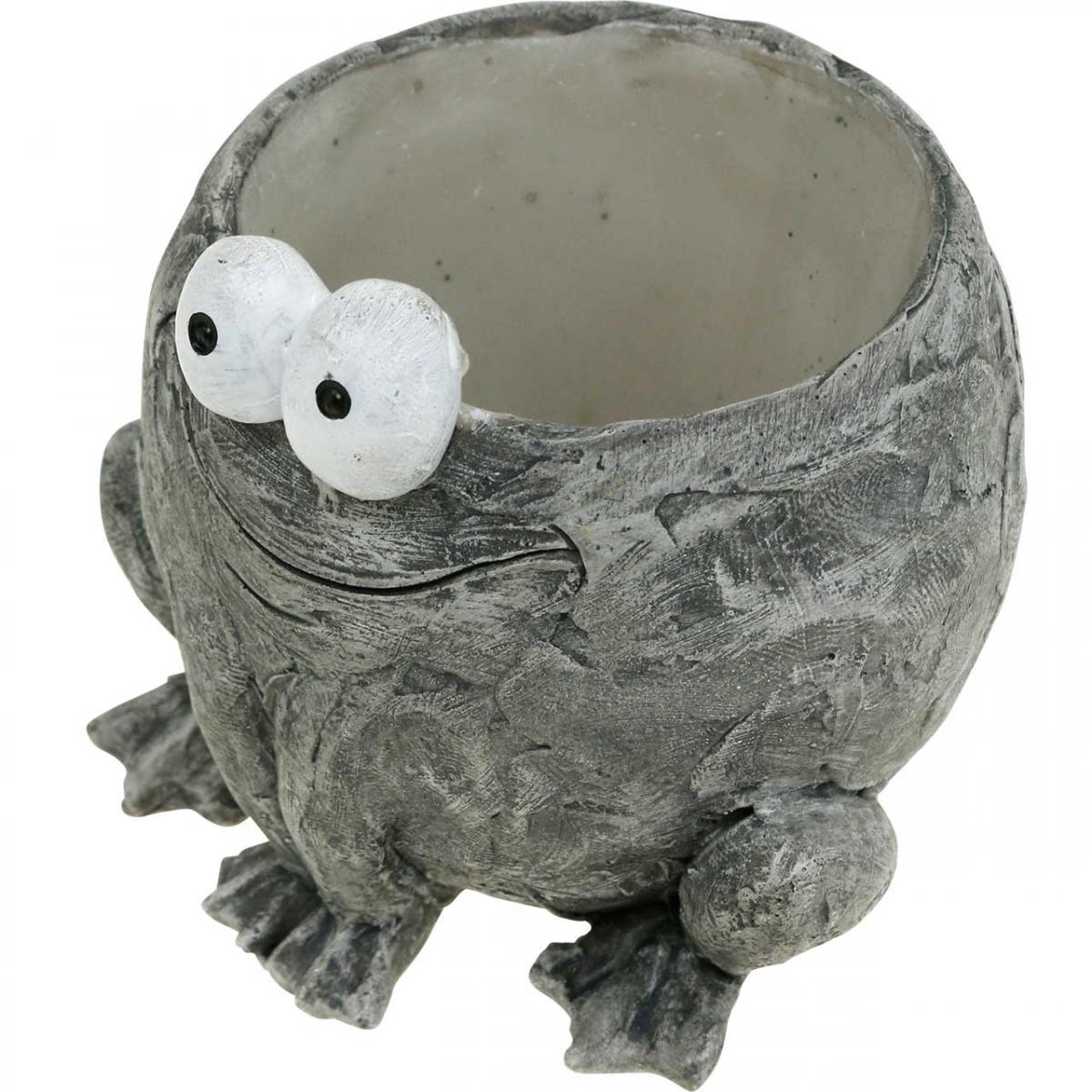 Topfgefäß Frosch mit Lächeln grau 11x12cm