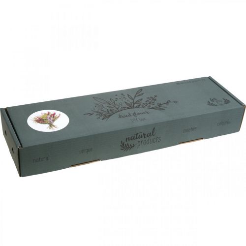 Ganz exquisit präsentiert sich das Trockenblumen-DIY-Set in Rosa. In der praktischen Box finden Sie alles, was Sie für Ihr individuelles Trockenfloristik-Bouquet benötigen. Aus von Natur gelblichen und grünlichen Trockengräsern und Getreideähren und in zartem Rosarot eingefärbter Trockendeko können Sie mit diesem Set einen individuellen Trockenstrauß selber machen. Trockenmaterialien als Naturartikel erleben gerade einen neuen Trend, so dass Sie mit dem dauerhaften und nachhaltigen Raumschmuck genau richtig liegen.Je nach dem Platz, den Sie für Ihr Trockenbouquet vorsehen, können Sie die Naturmaterialien aus dem Trockenblumen-Set zu einem runden Strauß für die Tischdeko zusammenstellen oder für ein Sideboard eine Schokoladenseite hervorkehren. Davon abgesehen, tun Sie mit Ihren getrockneten Gräsern und Getreidearten natürlich, was Ihnen beliebt. Auch der Einsatz der Trockenmaterialien, um einen Kranz mit Naturdeko zu dekorieren, ist also eine spannende Deko-Idee!