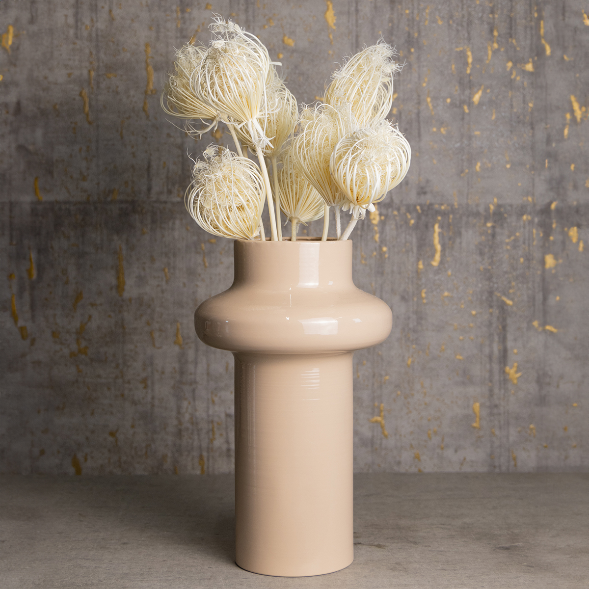 I fiori secchi come questo mazzo di finocchio aggiungono sempre nuove sfumature all'arredamento di qualsiasi stanza. I delicati capolini sono stati accuratamente conservati ed essiccati per questo bouquet. Il colore chiaro dei fiori essiccati e sbiancati è particolarmente bello. Le teste di diverse dimensioni e curvate verso l'interno dei gambi di finocchio creano un effetto rigoglioso ma aggraziato.Come decorazione secca, i rami di finocchio possono essere disposti splendidamente in un vaso alto. Il vetro mette in risalto ogni dettaglio della pianta secca, mentre un vaso rustico incornicia i bouquet secchi in stile rustico. Poiché la tendenza per i fiori e le erbe secche è in continua crescita, nel nostro negozio troverete anche un'ampia selezione di splendidi fiori secchi, che vi permetteranno di creare ghirlande secche personalizzate o composizioni naturali per ogni occasione.