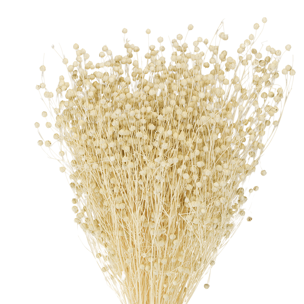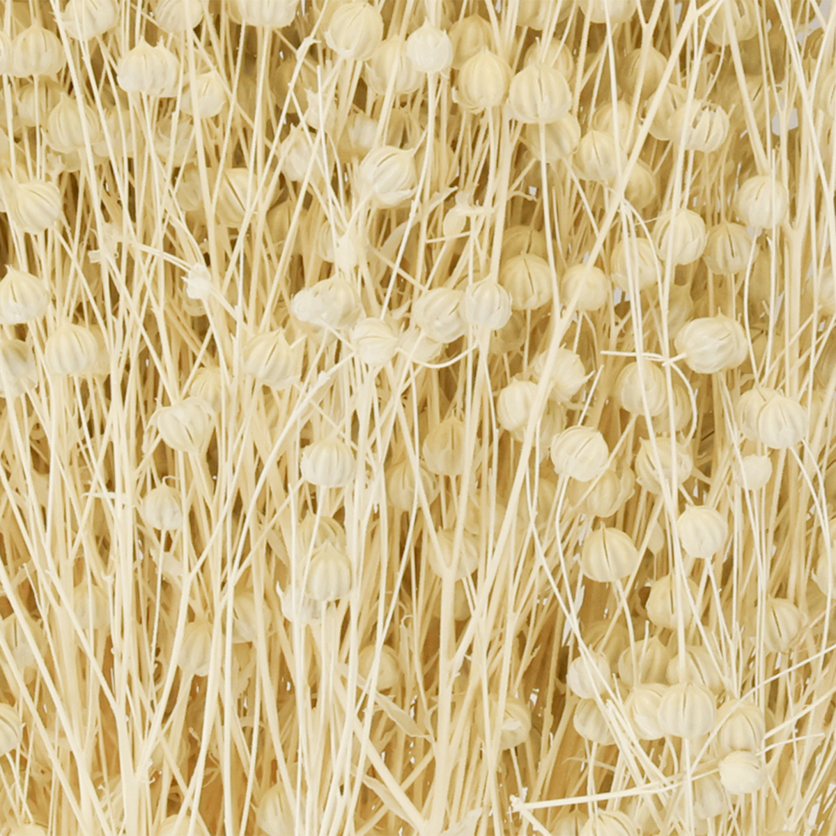 Cette herbe séchée légèrement blanchie est idéale pour décorer et créer vos propres compositions florales. Le lin séché peut être disposé en bouquet dans un vase élégant ou associé à d'autres fleurs séchées ou fraîchement coupées.Le lin est naturellement coloré, légèrement blanchi, et s'harmonise donc avec la couleur de nombreuses autres herbes séchées, comme l'herbe de la pampa, les roseaux ou le chardon séché. Avec ses capsules de graines rondes, le lin séché se distingue visuellement de l'ensemble des fleurs séchées.