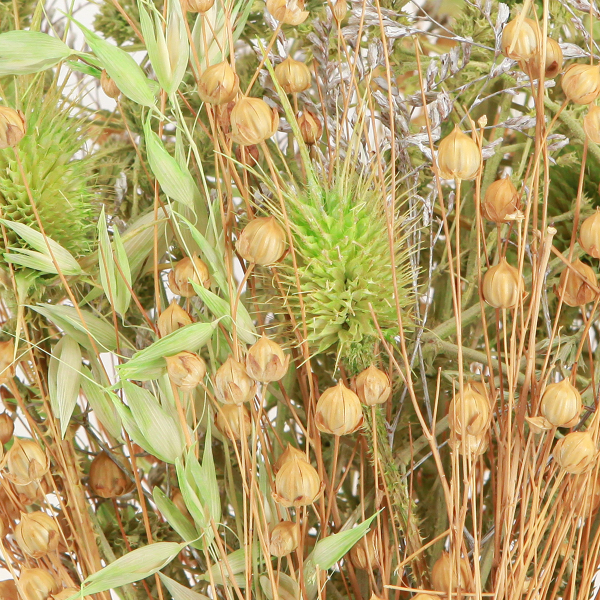 Material: Wilde Karde, Hafer, Flachs, Gräser