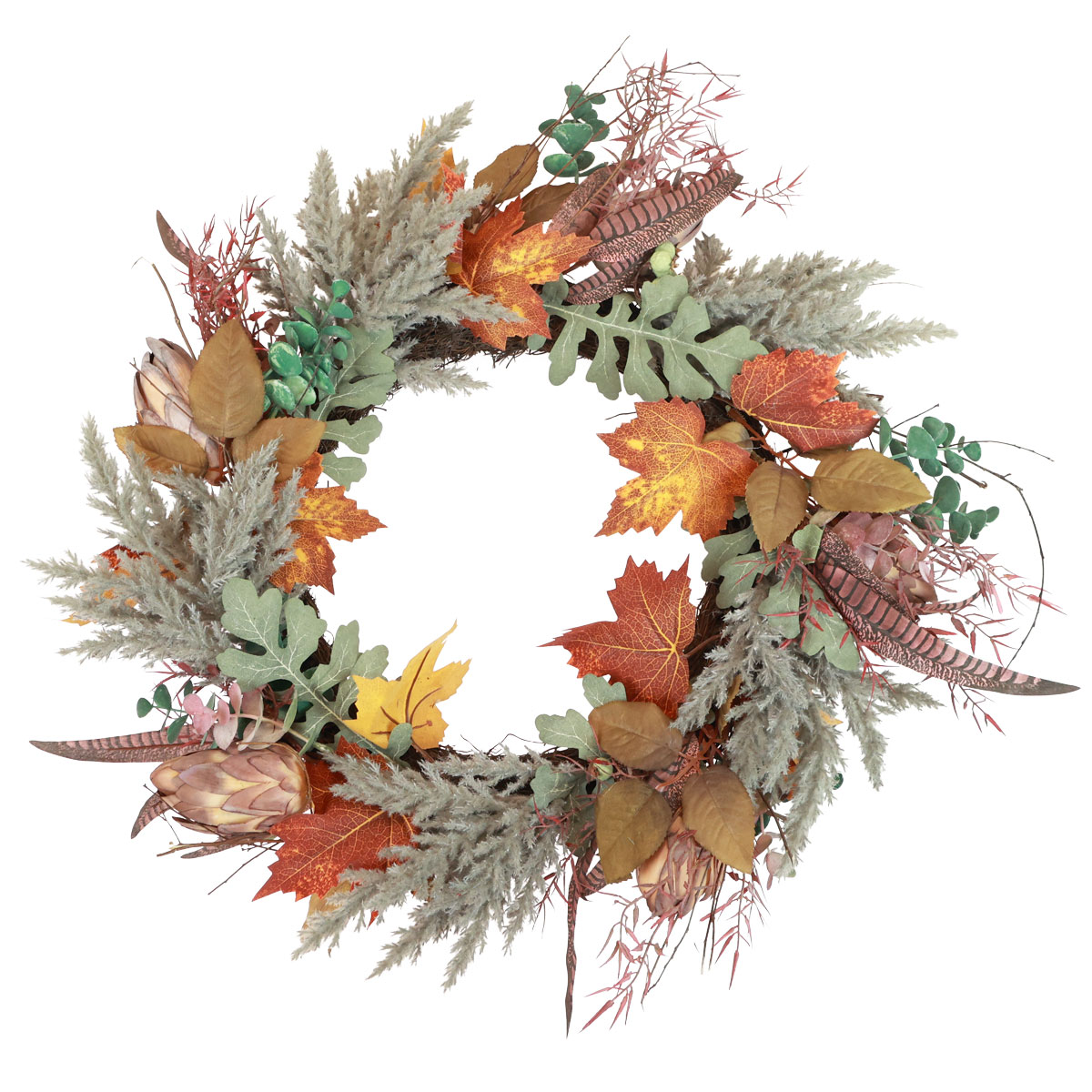 Produktname: Türkranz Protea Künstlicher Kranz mit Herbstblättern Ø55cm