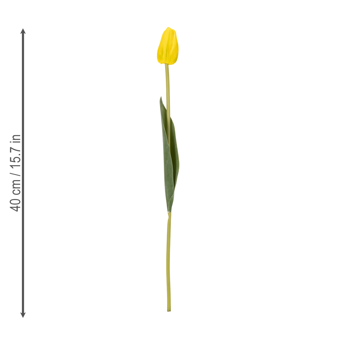 Die sieben leuchtend gelben Tulpen wirken durch ihre realistische Anmutung nahezu täuschend echt. Sie sind aus hochwertigem Polyester gefertigt, wodurch die sanften Farbverläufe der Blütenblätter wunderbar zur Geltung kommen, und mit robustem Kunststoff stabil verarbeitet. Mit einer Länge von 40 cm bieten sie optimale Flexibilität für verschiedenste Dekorationen: Egal, ob sie in einer hohen schmalen Vase arrangiert werden oder locker als Kombinationspartner in einem Frühlingsgesteck Platz finden – sie ergänzen jeden Stil perfekt. Besonders in modern eingerichteten Räumen oder im skandinavischen Design wirken die klaren, kräftigen Farben erstaunlich harmonisch.