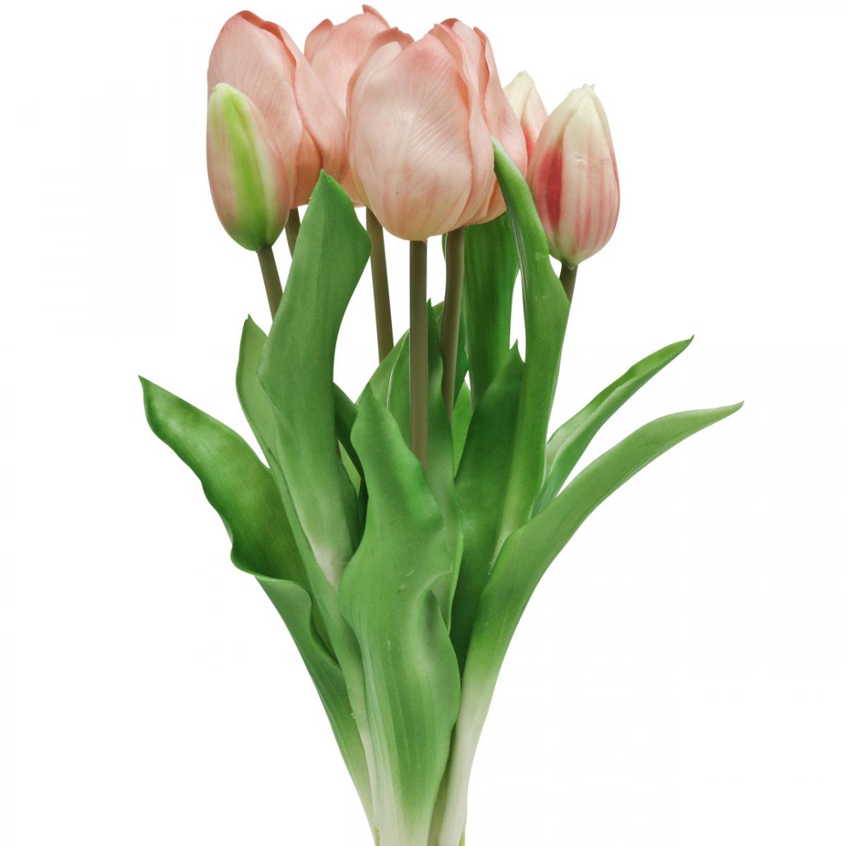 Tulipani artificiali Real-Touch rosa pesca 38 cm mazzo da 7 pz