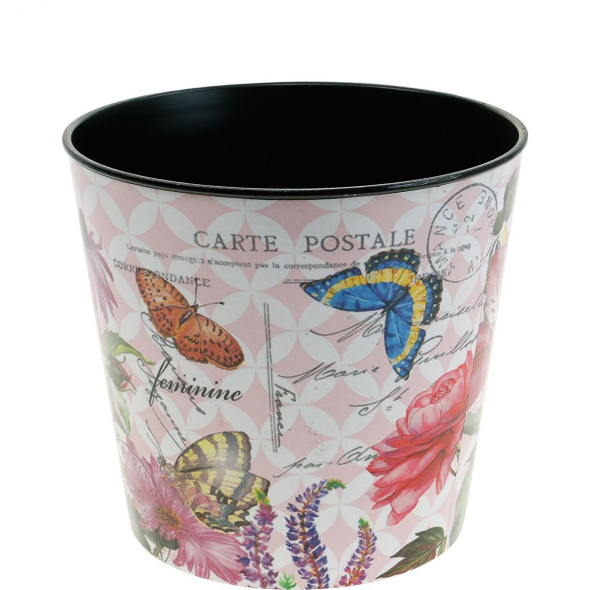 Cache-pots d'été frais pour les chambres et les balcons: le pot de fleurs impressionne par ses motifs floraux colorés. Le seau décoratif avec des papillons et une flore colorée est fait de plastique robuste et possède un charme rétro subtil. Noir à l'intérieur, il convient également comme jardinière.Le petit seau à plantes fait une décoration d'été élégante et simple avec des violettes de corne ou d'autres fleurs. Utilisez-le comme un vase décoratif rempli de fleurs colorées. Même pour un petit arrangement d'été, vous avez toujours le bon accessoire pour la décoration de table à portée de main avec le pot. Ou peut-être préférez-vous garder les crayons de couleur à portée de main dans le seau?