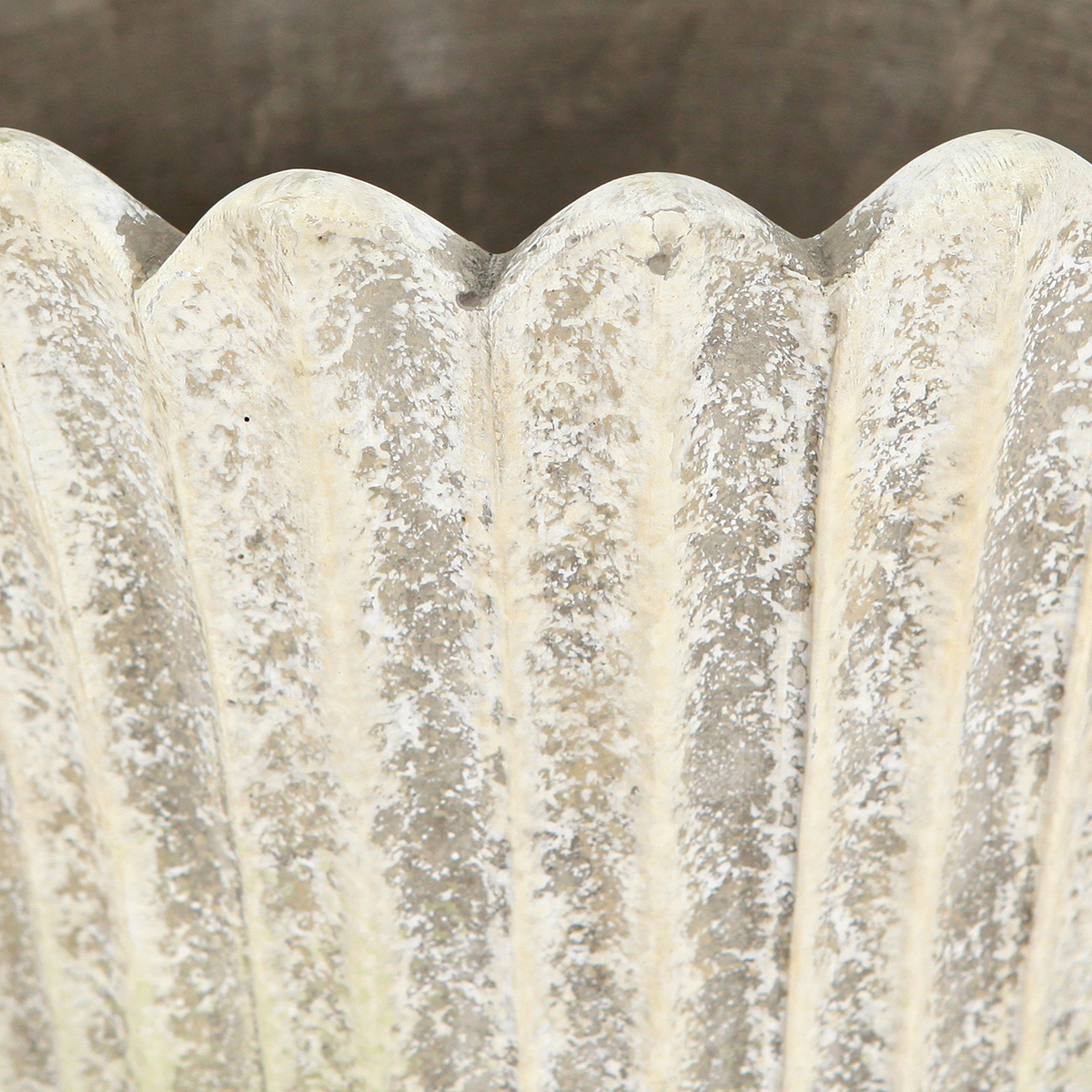 Die graue Farbe des Übertopfs ist ideal für jede Umgebung und jeden Einrichtungsstil. Grau vermittelt Ruhe und Ausgeglichenheit. Die Form, inspiriert von einem Blumenkelch strahlt natürliche Schönheit und Anmut aus. Durch die Antik-Patina wird der antike Übertopf vollends zu einer zeitlosen Dekoration für drinnen und draußen.