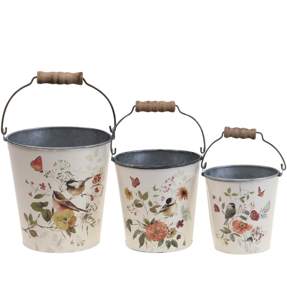 Secchio per fioriera in metallo con manico Ø14/11,5/9,5cm set di 3