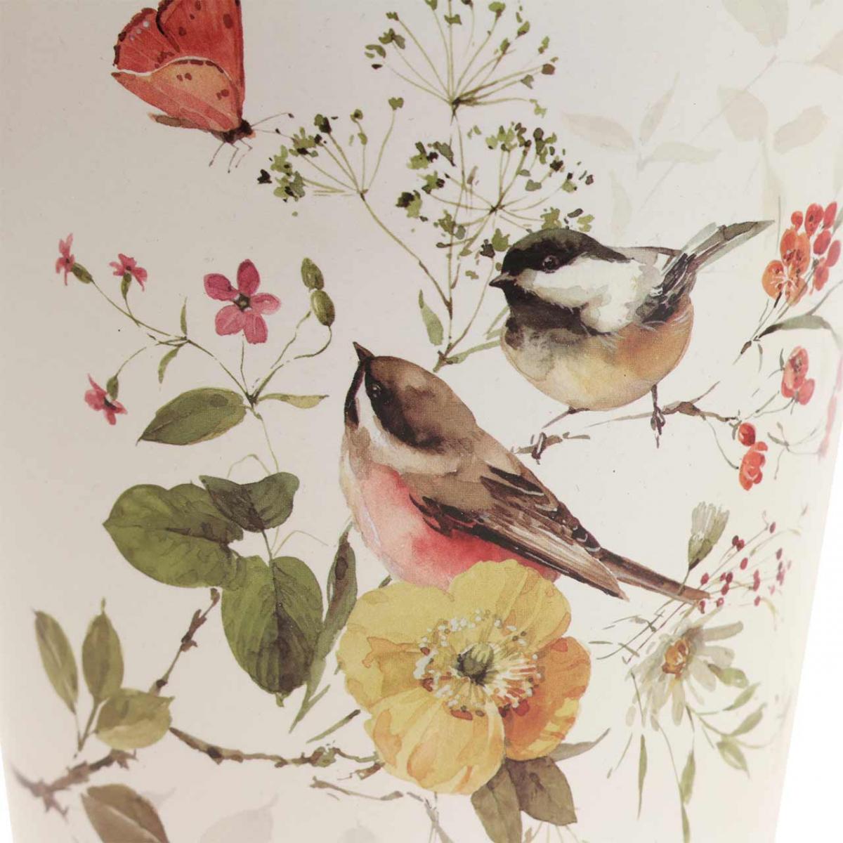 Der kleine Übertopf als Eimer aus Metall ist Metall-Deko in romantisch-antikem Stil. Der cremefarbene Deko-Eimer mit den nostalgischen Vögeln und Gartenblumen macht Pflanzen für den Frühling genauso wunderschön wie für den Sommer.