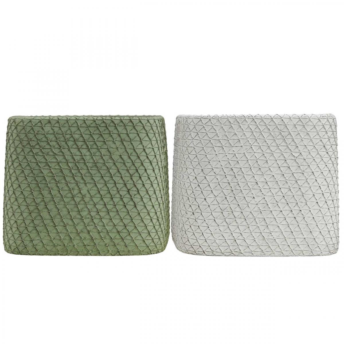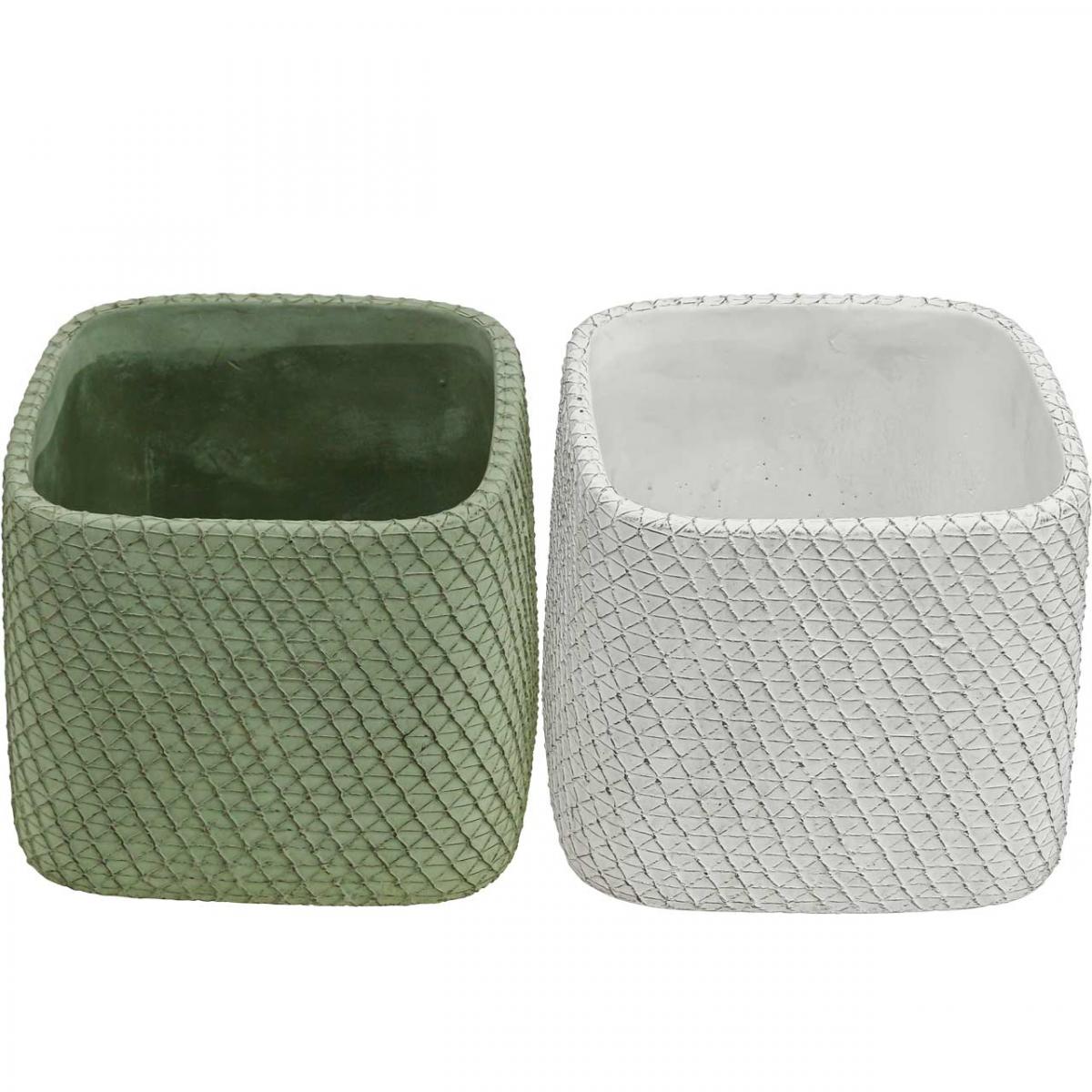 Jardinière en céramique maille relief vert blanc 12,5x12,5cm H9cm 2pcs