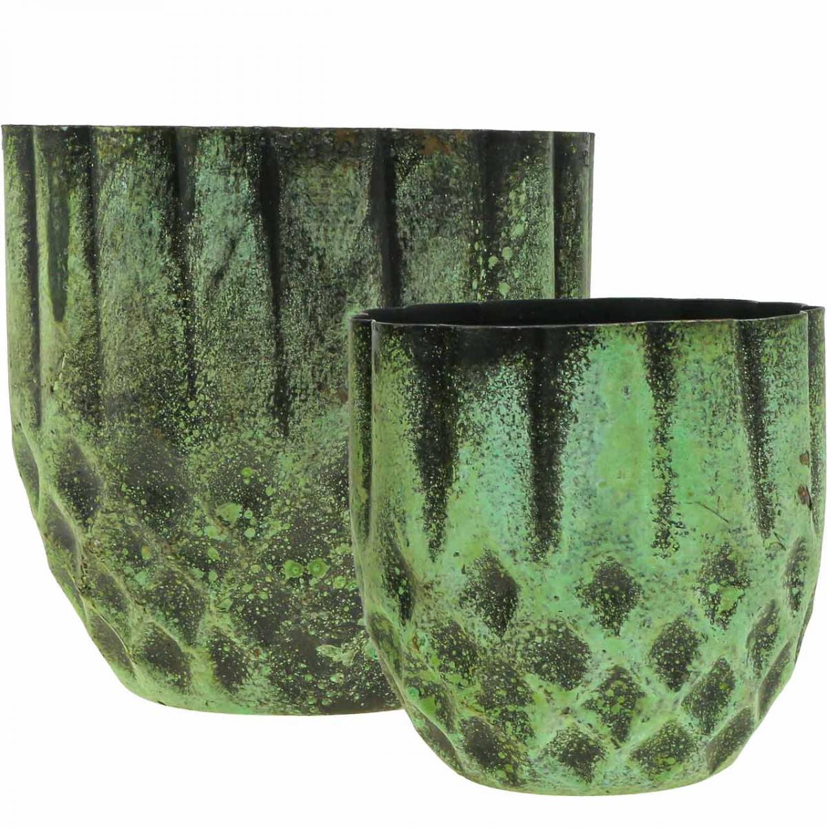 Fioriera in metallo vaso da fiori vintage verde Ø14/12cm set di 2