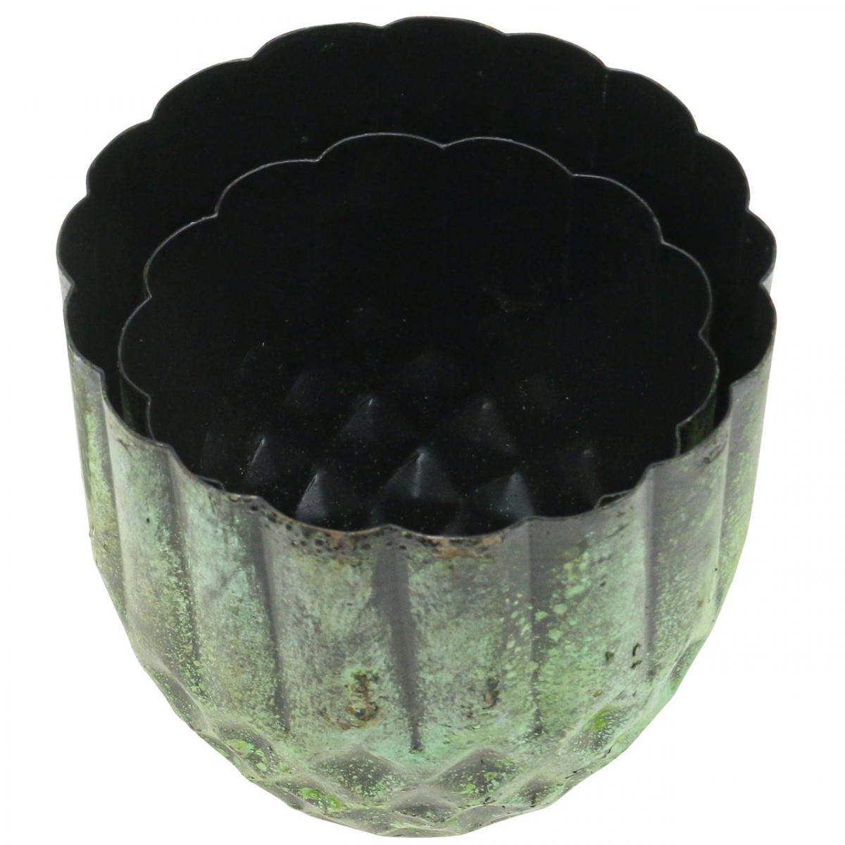 Jardinière métal pot de fleurs vintage vert Ø14/12cm lot de 2