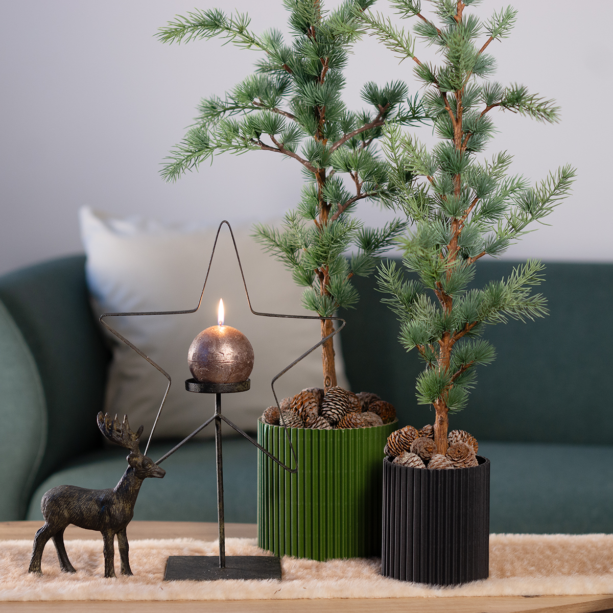 Ergänzen Sie Ihren grünen Übertopf mit weiteren stilvollen Produkten aus dem Floristik24-Sortiment. Eine Kombination mit schwarzen Übertöpfen schafft eine elegante, kontrastreiche Optik. Auch kleinere Übertöpfe aus Papier lassen sich wunderbar damit kombinieren, um ein harmonisches Gesamtbild zu erschaffen. Für einen festlichen Anlass können Sie den Topf mit unserer Auswahl an Lichterketten dekorieren, die dem Arrangement das gewisse Etwas verleihen.