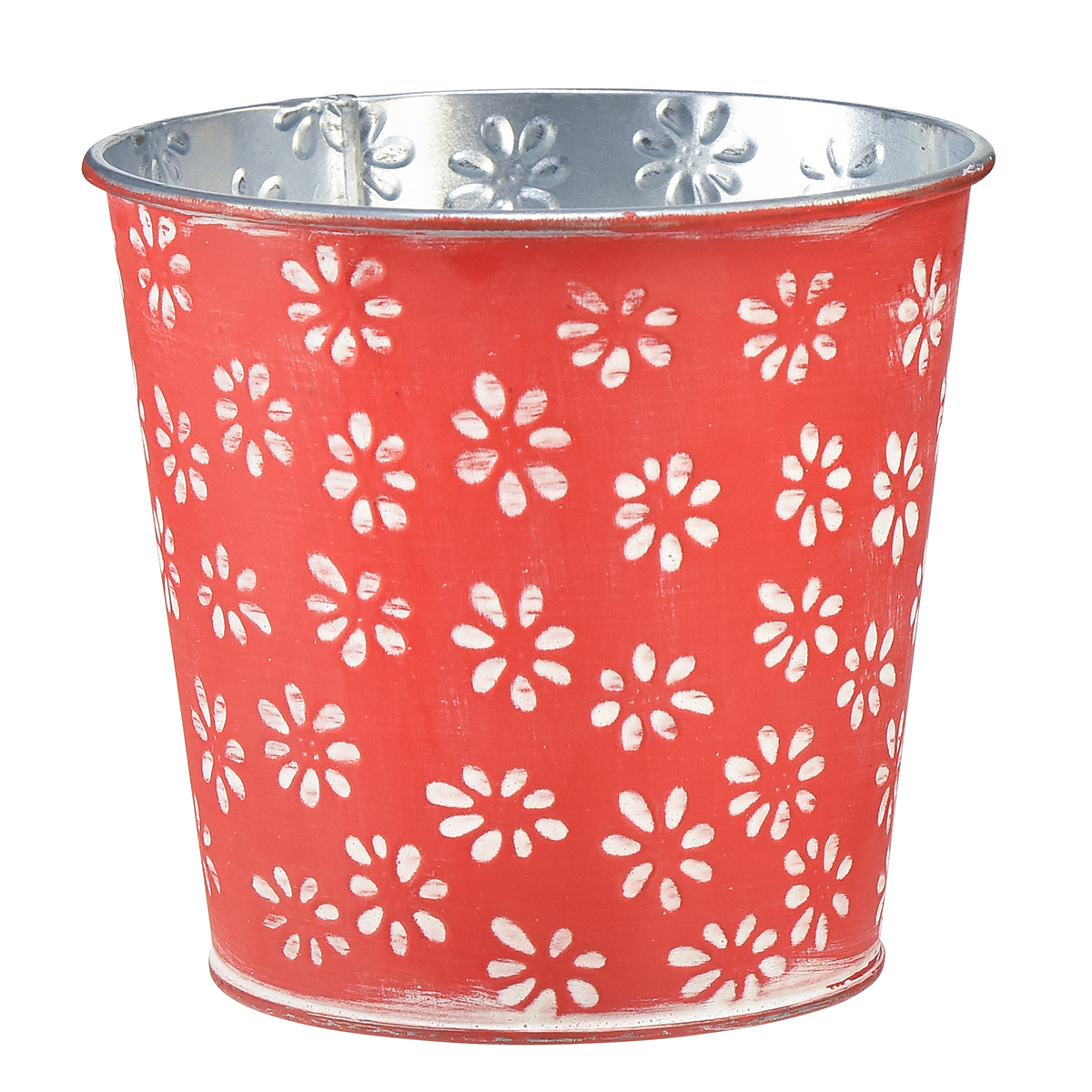 Übertopf Rot Weiß Mini-Blumentopf geblümt Metall Ø10,5cm ...