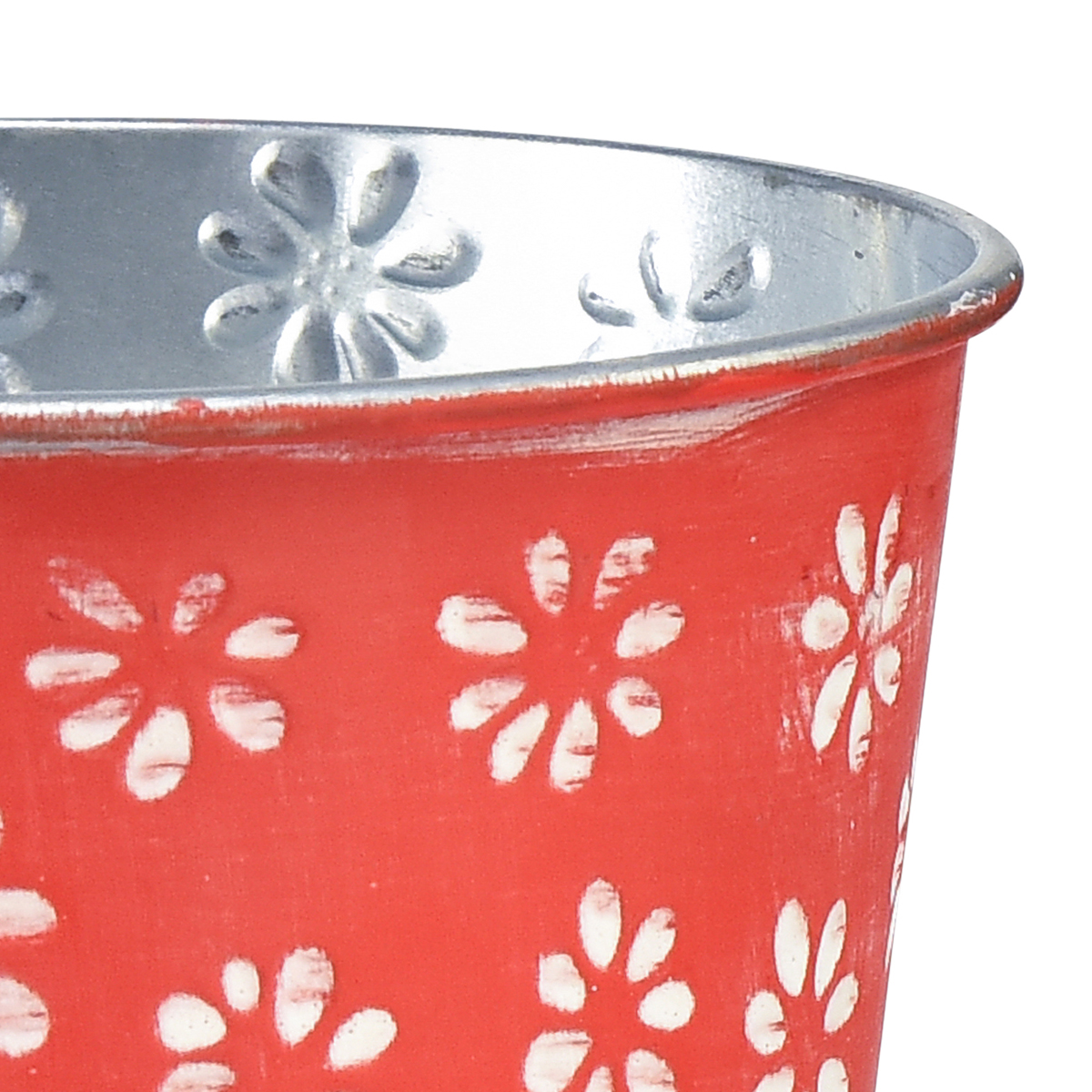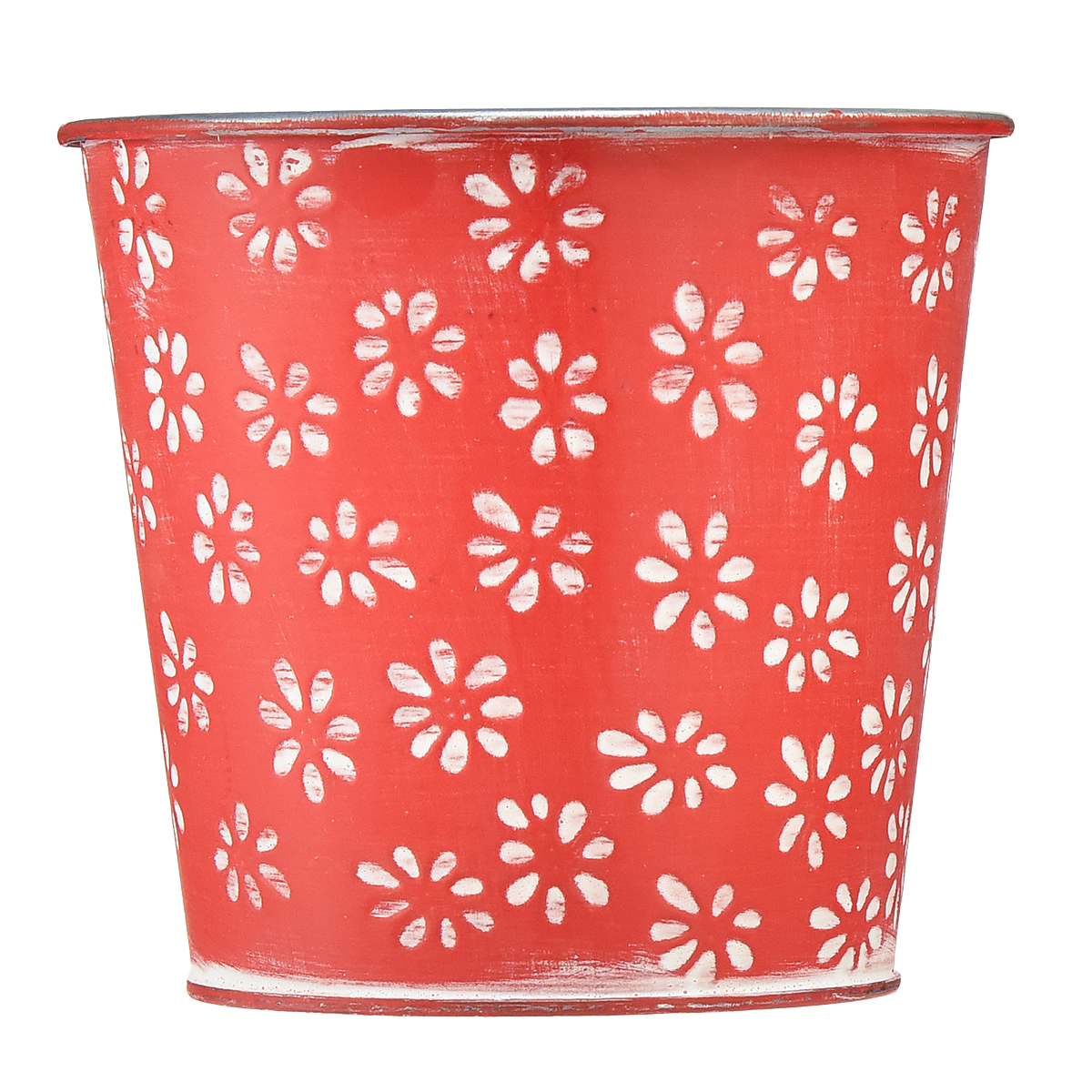 Jardinière rouge blanc mini pot de fleur floral métal Ø10,5cm H10,5cm