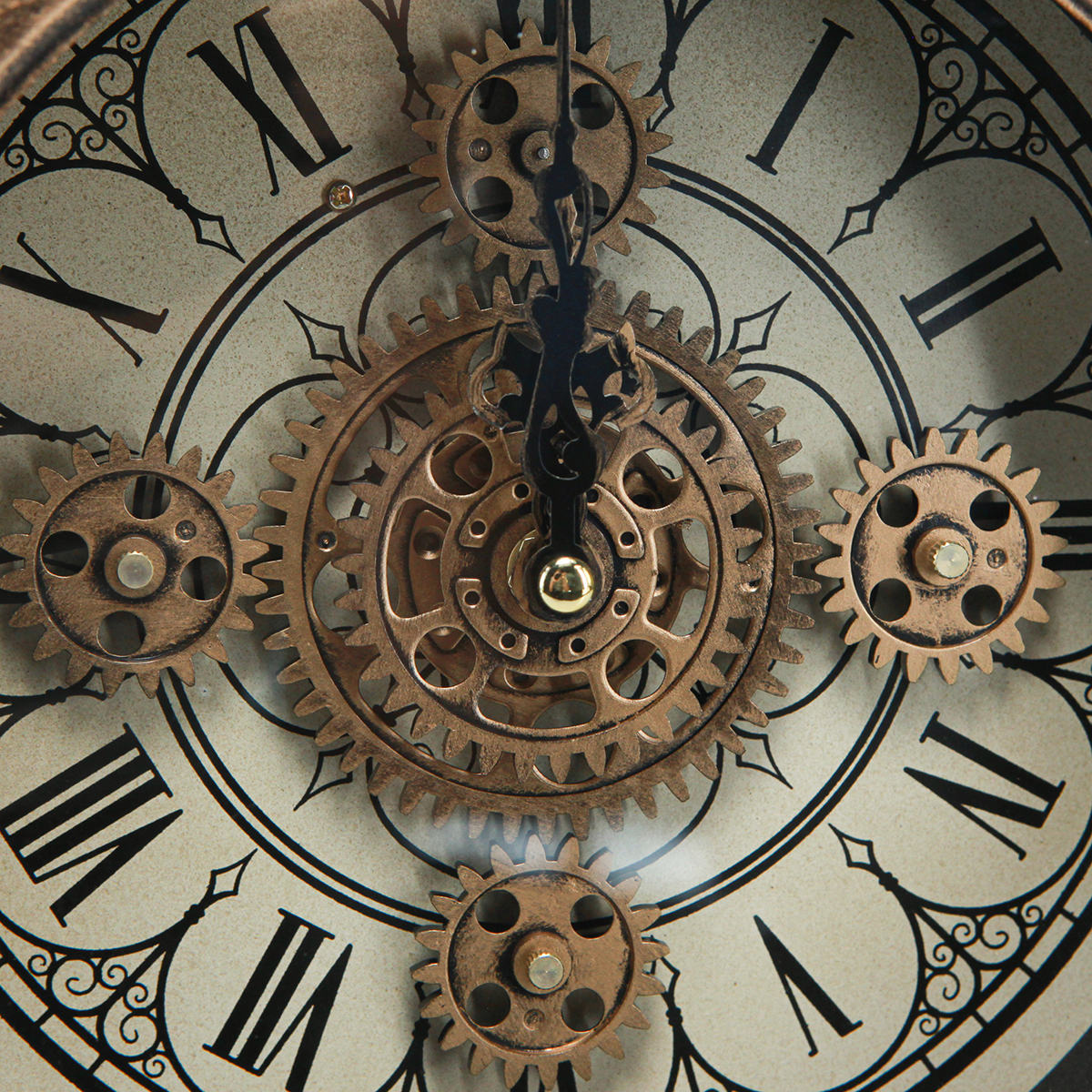 Verleihen Sie Ihrem Zuhause einen Hauch von Nostalgie mit dieser einzigartigen Uhr im Vintage-Stil. Mit ihrem Design im Steampunk-Look und den römischen Zahlen ist diese Uhr nicht nur ein praktisches Zeitmessinstrument, sondern auch ein faszinierendes Deko-Objekt.
