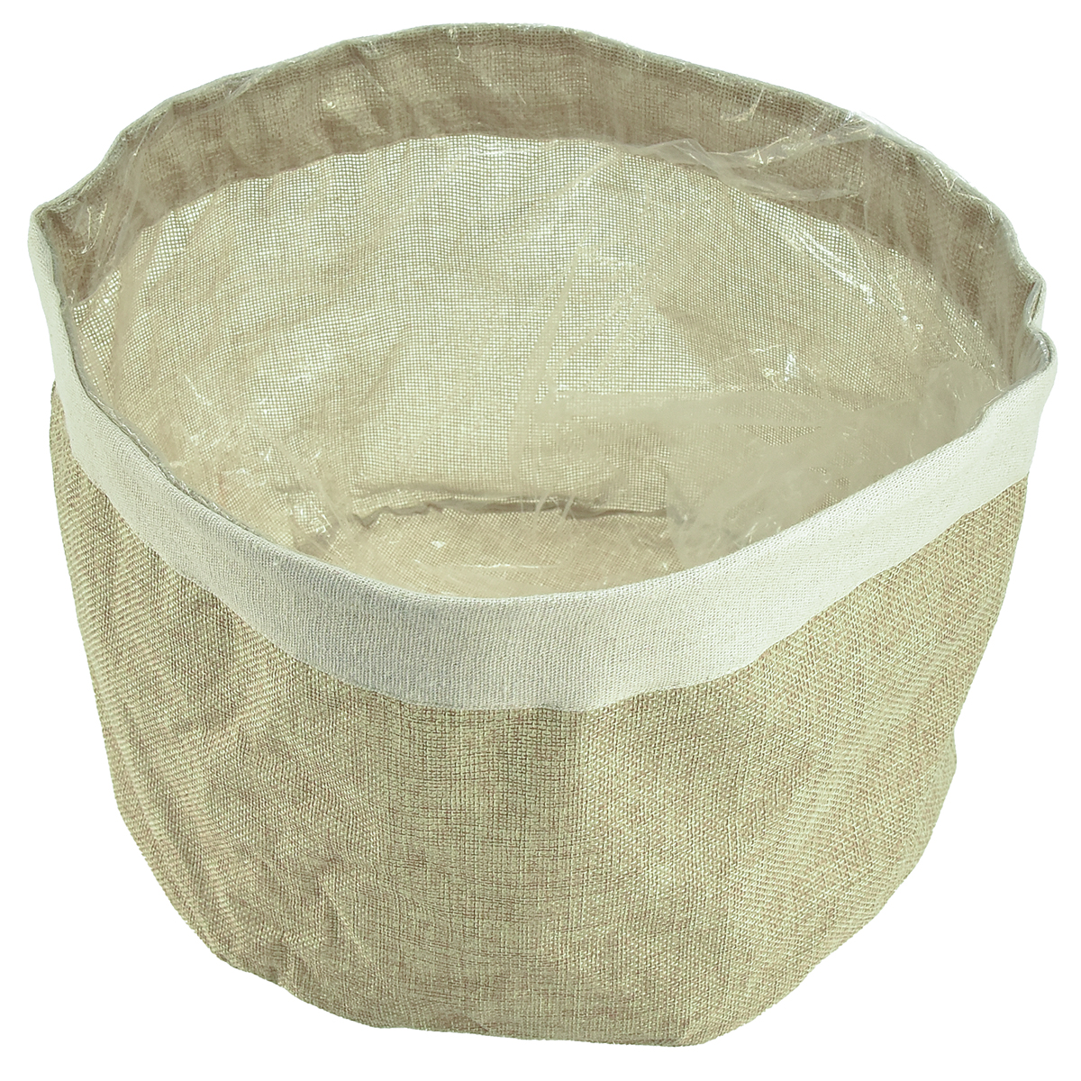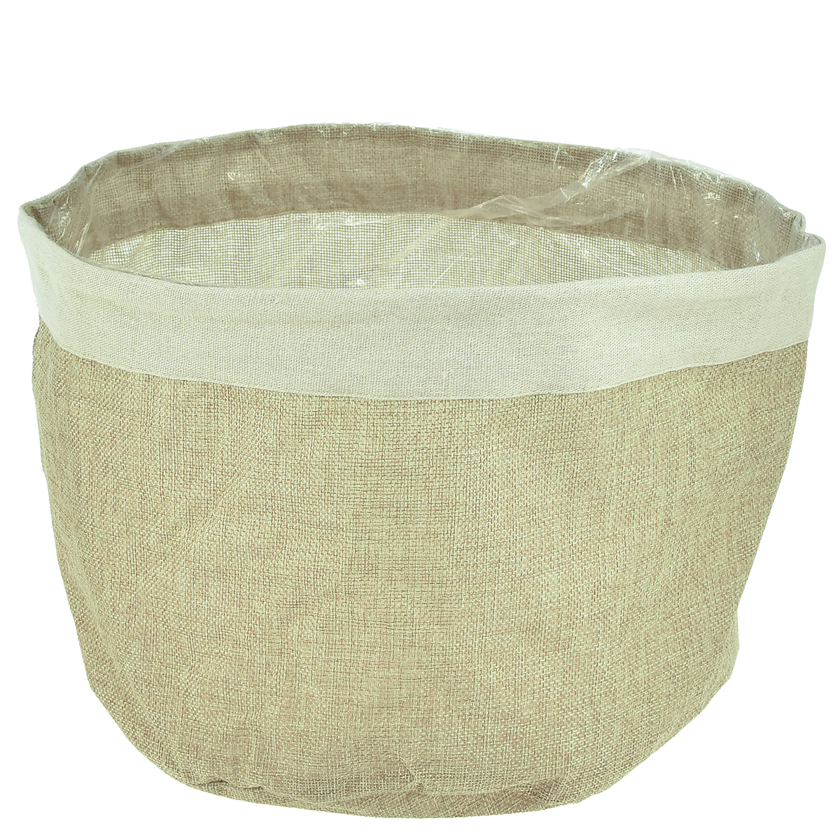 Vous pouvez utiliser l'ustensile à merveille comme jardinière en jute. Le panier en tissu d'aspect naturel est recouvert à cet effet d'un film plastique.Une large bande pliée encadre le bord de la jardinière en jute. Le tissu est fini avec du plastique et un film a été cousu dans l'ouverture du panier en tissu lui-même. L'ustensile aux couleurs naturelles a l'air si chic.