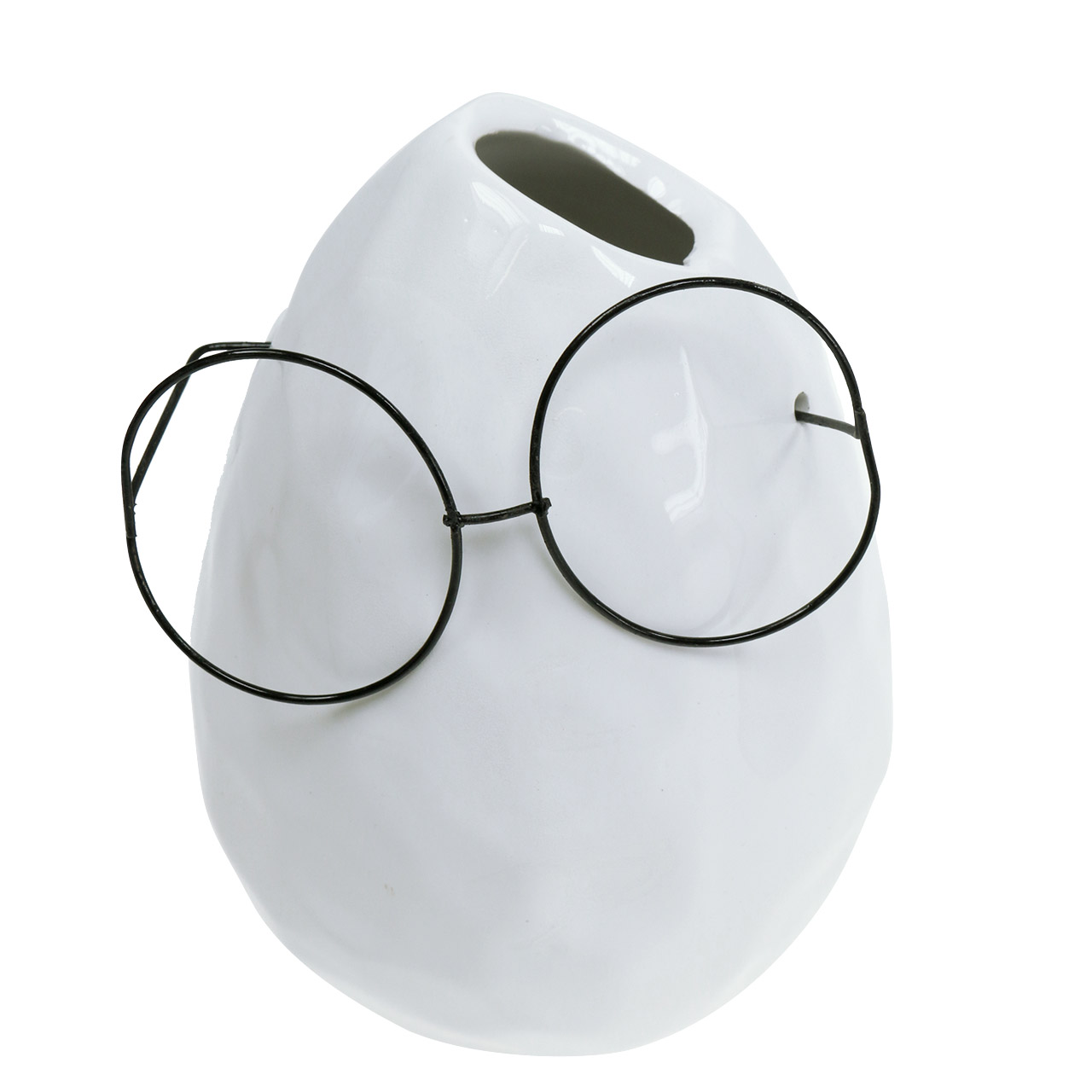 Produktname: Vase mit Brille Osterdeko Keramik Weiß Ø8,5cm H13cm 3 St