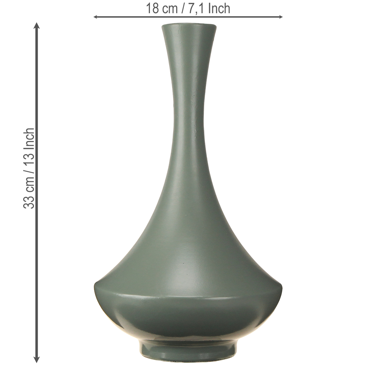 Diese dekorative Vase besticht durch ihre harmonisch geschwungene Form und die hochwertige Verarbeitung aus Metall. Die matte grüne Oberfläche wirkt dezent und elegant zugleich und unterstreicht den modernen Charakter. Ob als Tischmittelstück im Esszimmer, dekorativer Akzent auf der Kommode oder als stilvolles Element am Büro-Schreibtisch: Ihre Vielseitigkeit macht sie zu einem unverzichtbaren Accessoire für jede Wohnungseinrichtung. Mit einer Höhe von 33 cm hat sie genau die richtige Größe, um sich in den Raum einzufügen und dennoch aufzufallen. Wer es minimalistisch mag, wird sie lieben – doch auch in Kombination mit anderen Dekorationen entfaltet sie ihre volle Wirkung.