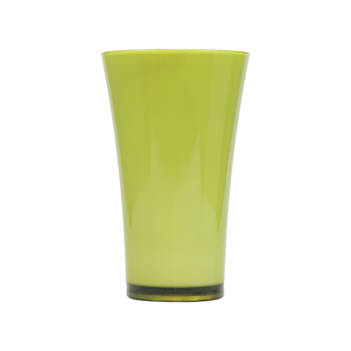 Il vaso in verde è uno dei vasi decorativi Vizzy, che puoi acquistare in diverse dimensioni e colori nel nostro negozio. Il vaso da fiori in plastica ha l'aspetto di un vaso di vetro.Il doppio rivestimento crea l'illusione perfetta che possa essere un vaso di vetro con un inserto. Invece vedi un vaso di plastica, il cui materiale ricorda l'acrilico. La forma conica, grazie alla forma leggermente curva e affusolata verso il basso, rende il vaso da fiori molto elegante.